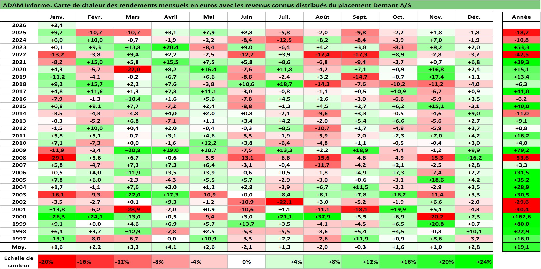 Site dédié aux investisseursPage dédiée sur site financeAnalyse des valorisations hebdomadaires de l'action Demant A/S. Cet actif est cote en DKK. Les valorisations sont en contrevaleur EURO et couvrent les semaines 1997W01 a 2026W05. Les revenus de cet actif financier sont pris en compte depuis la semaine 1997W20. La note ESG de cet actif n'est pas connue.