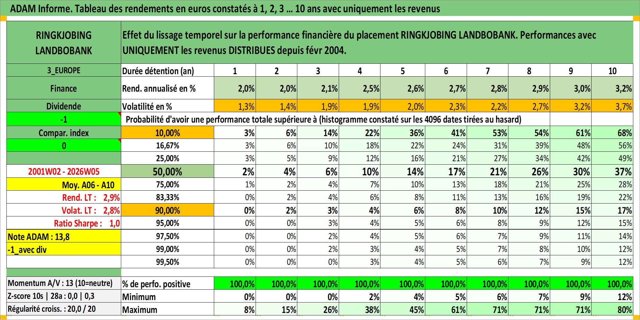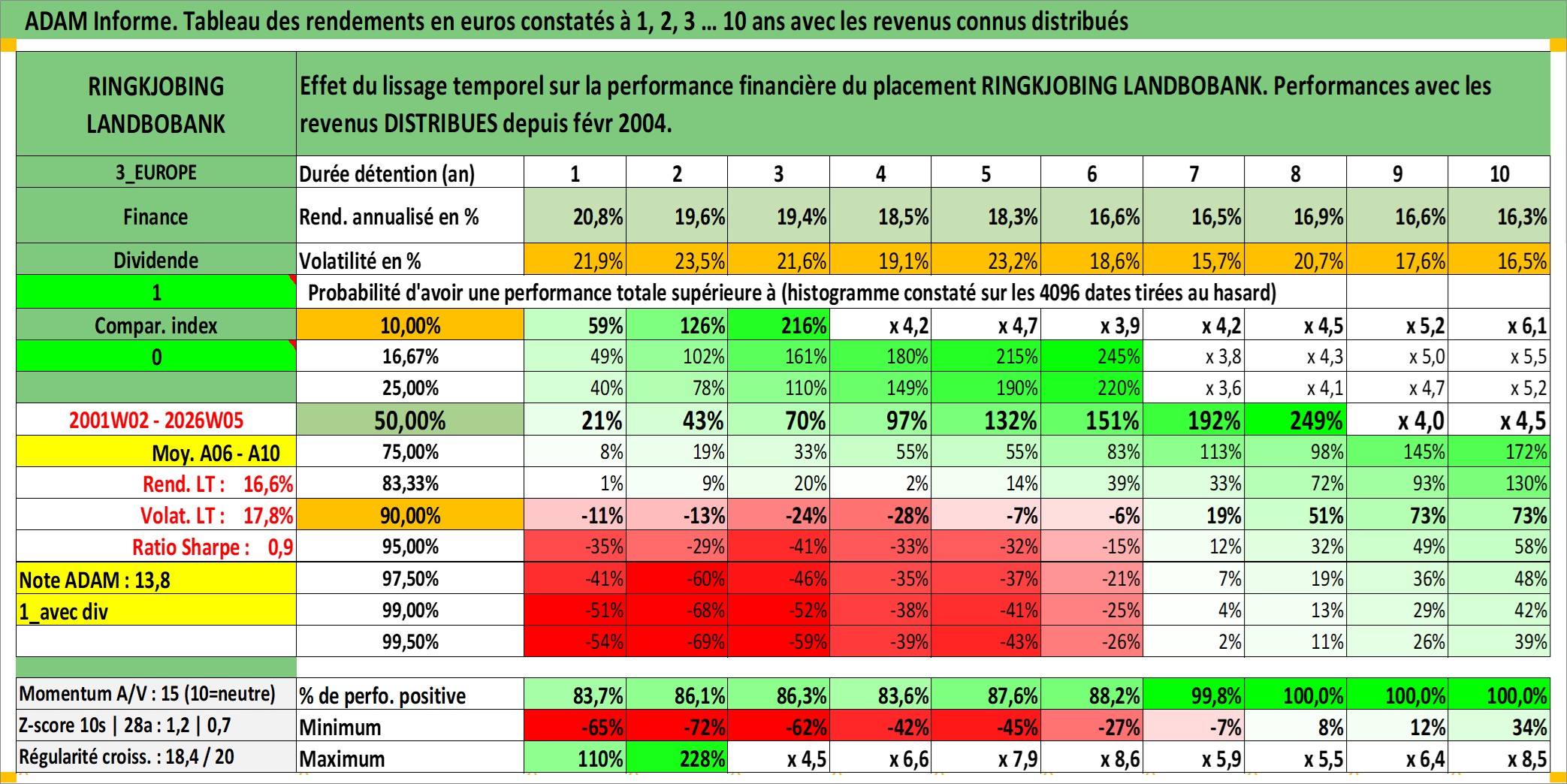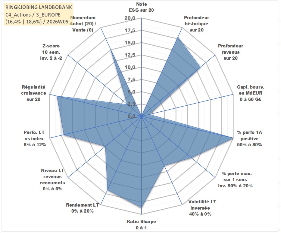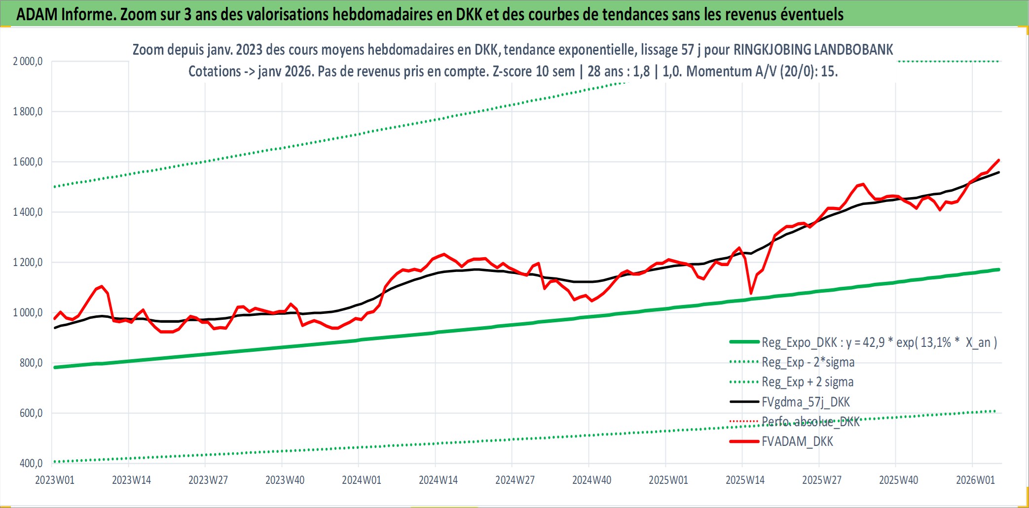 Site dédié aux investisseursPage dédiée sur site financeAnalyse des valorisations hebdomadaires de l'action RINGKJOBING LANDBOBANK. Cet actif est cote en DKK. Les valorisations sont en contrevaleur EURO et couvrent les semaines 2001W02 a 2026W05. Les revenus de cet actif financier sont pris en compte depuis la semaine 2004W09. La note ESG de cet actif n'est pas connue.