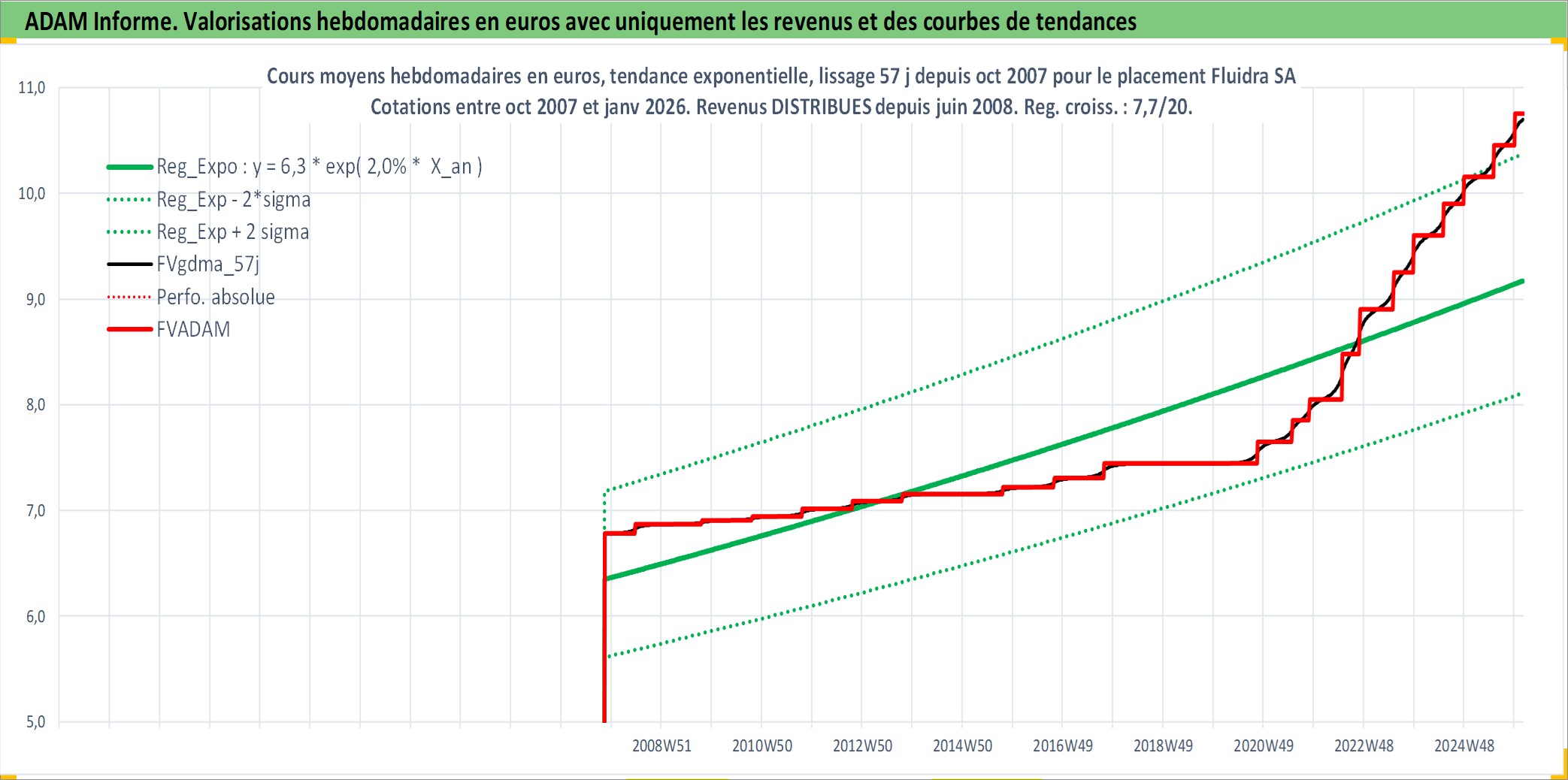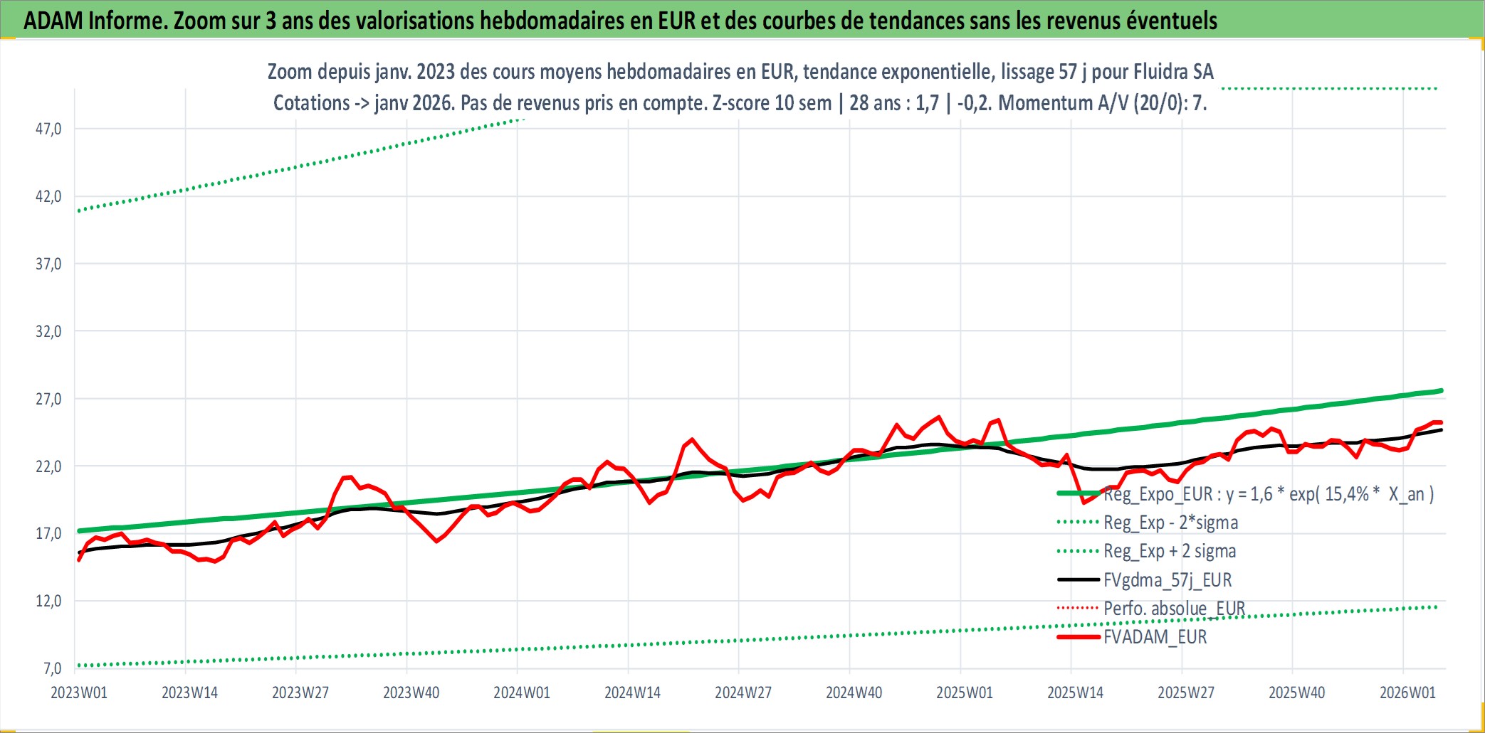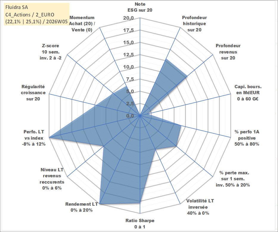 Site dédié aux investisseursPage dédiée sur site financeAnalyse des valorisations hebdomadaires de l'action Fluidra SA. Cet actif est cote en EUR. Les valorisations couvrent les semaines 2007W44 a 2026W05. Les revenus de cet actif financier sont pris en compte depuis la semaine 2008W24. La note ESG de cet actif n'est pas connue.