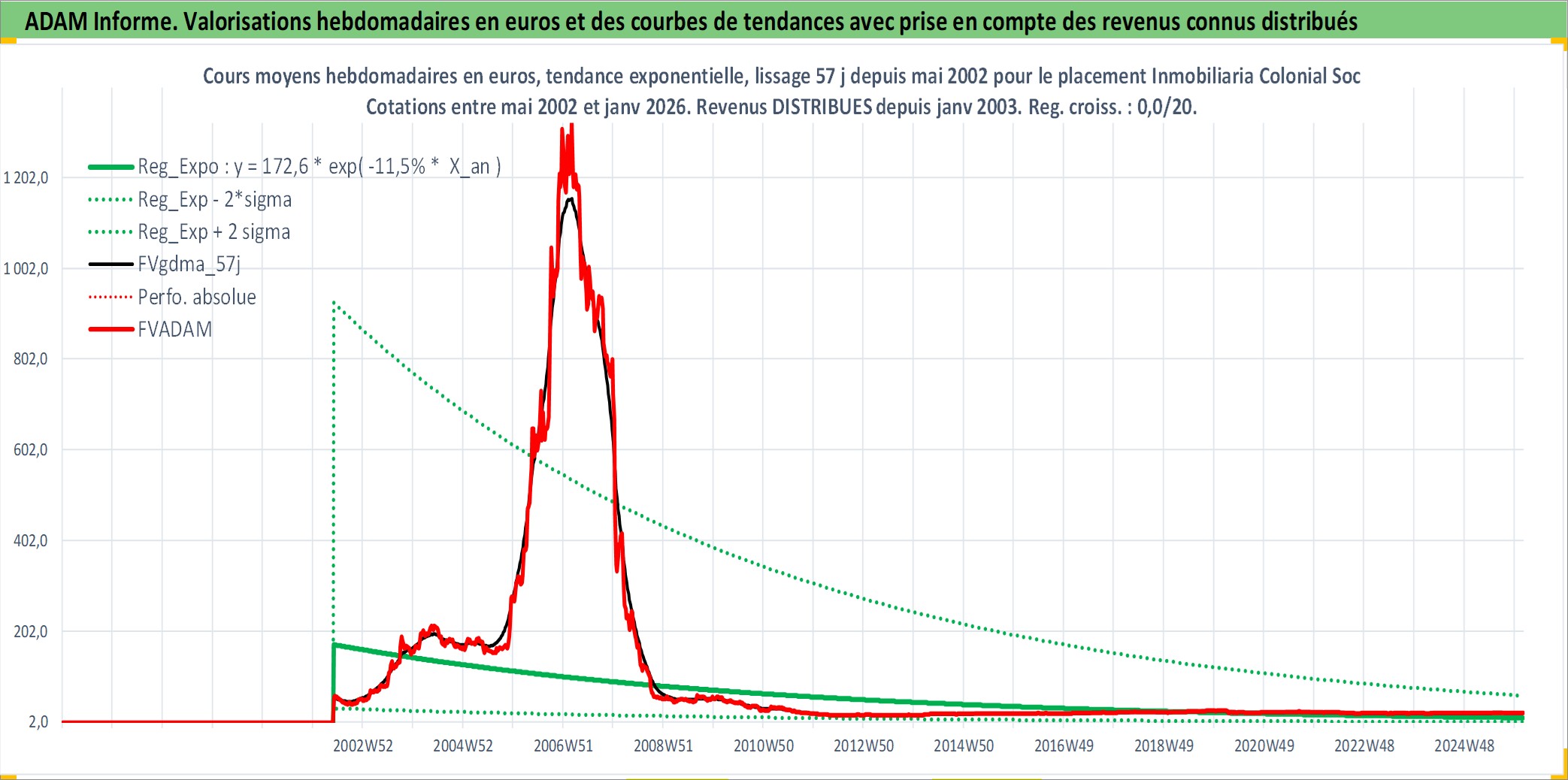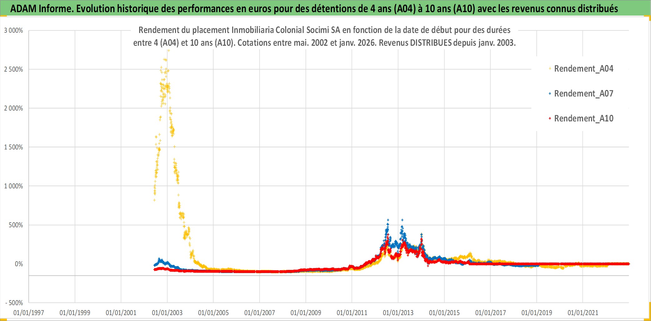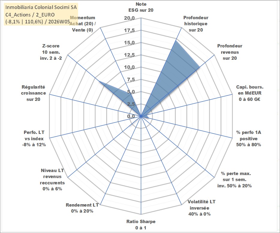 Site dédié aux investisseursPage dédiée sur site financeAnalyse des valorisations hebdomadaires de l'action Inmobiliaria Colonial Socimi SA. Cet actif est cote en EUR. Les valorisations couvrent les semaines 2002W22 a 2026W05. Les revenus de cet actif financier sont pris en compte depuis la semaine 2003W05. La note ESG de cet actif n'est pas connue.