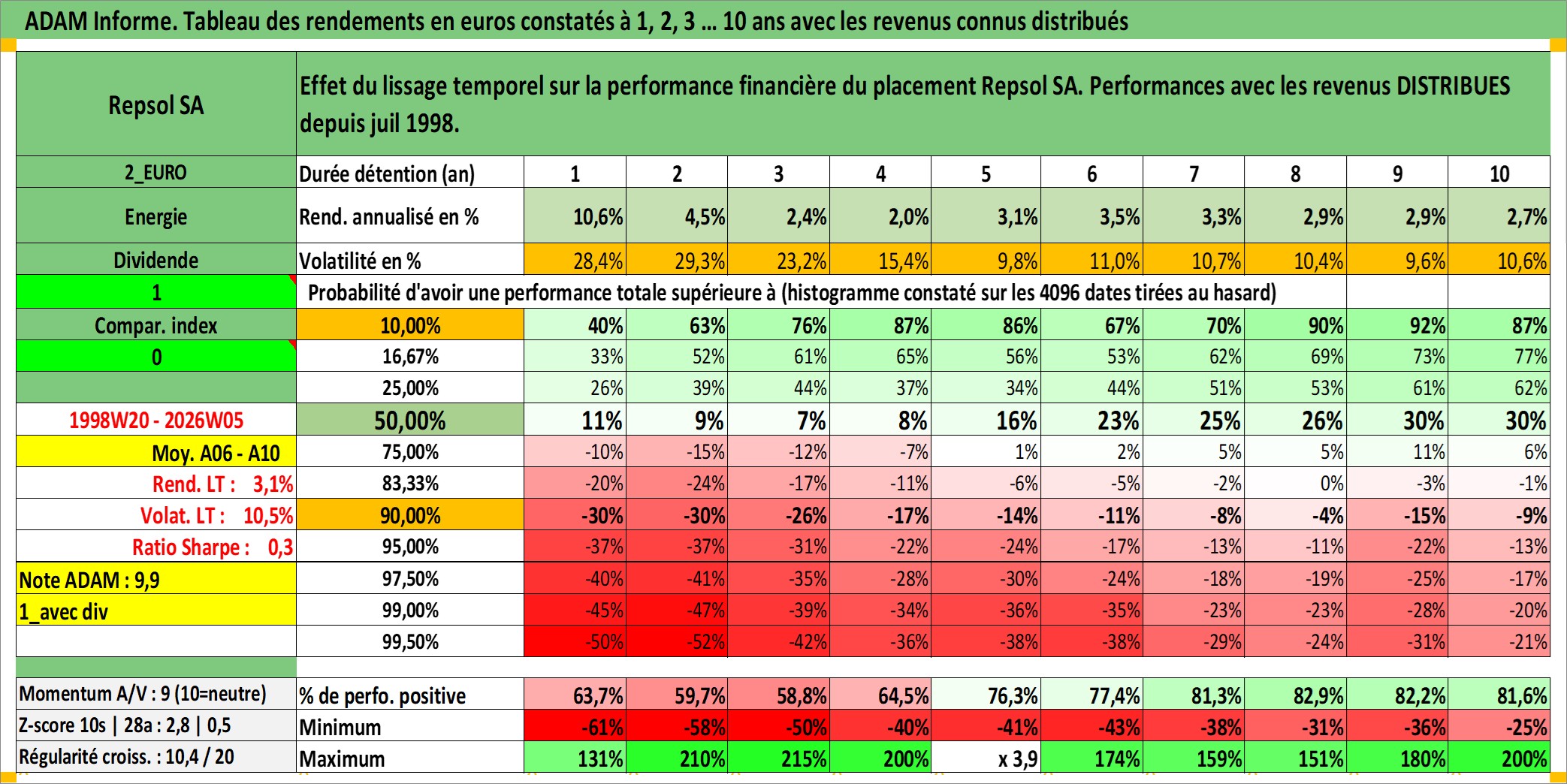 Dernière perfo 10 ans en %