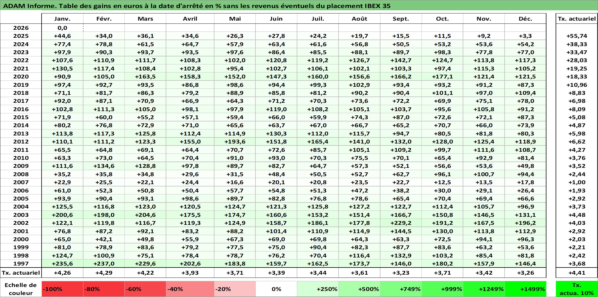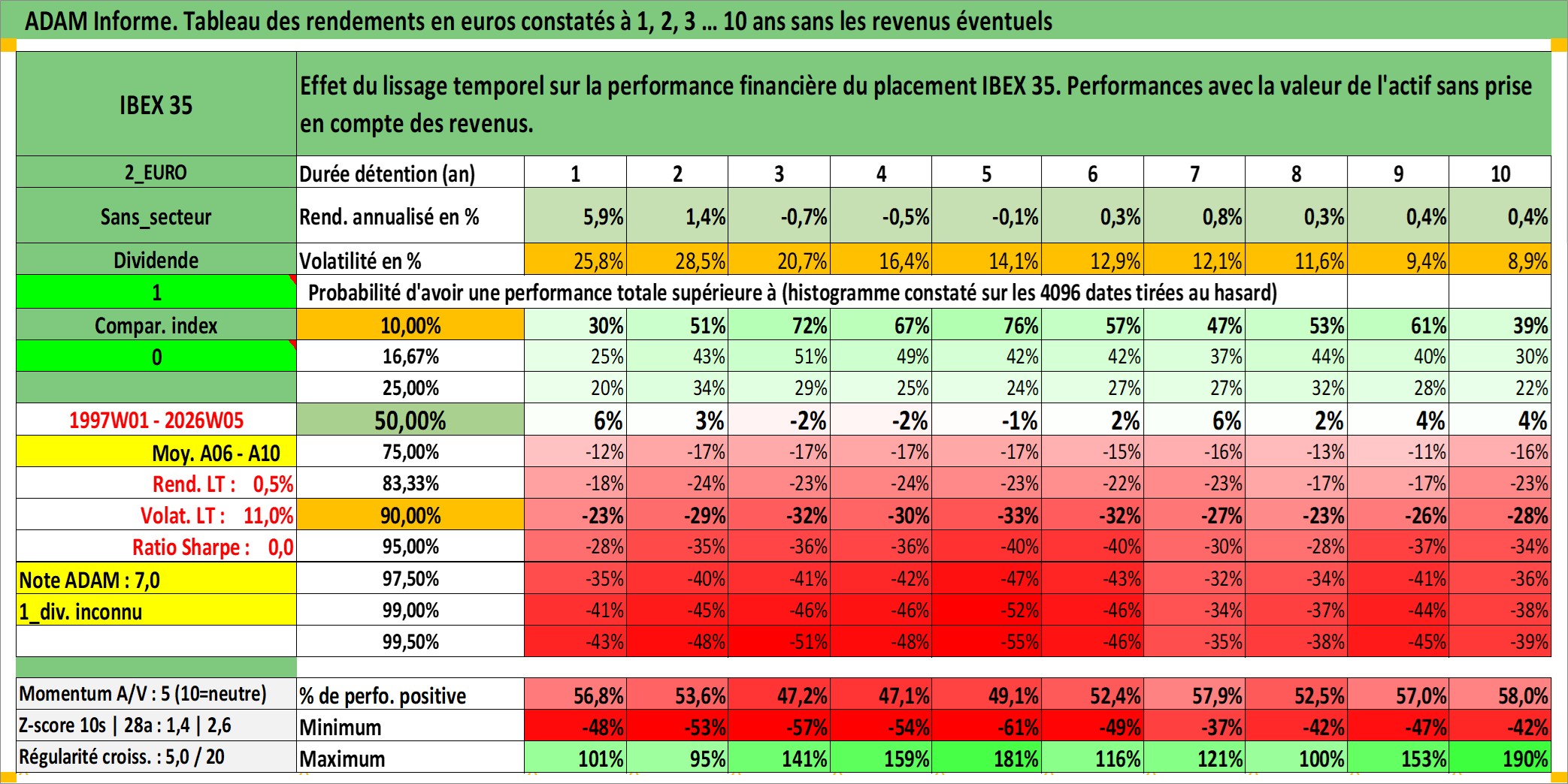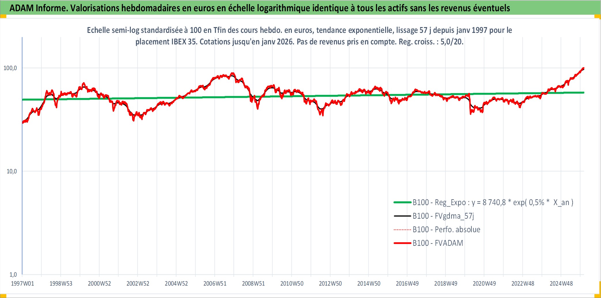 Site dédié aux investisseursPage dédiée sur site financeAnalyse des valorisations hebdomadaires de l'actif IBEX 35. Cet actif est cote en EUR. Les valorisations couvrent les semaines 1997W01 a 2026W05. Les revenus de cet actif financier ne sont pas connus car non existants ou non disponibles sur le site Yahoo Finance. La note ESG de cet actif n'est pas connue.