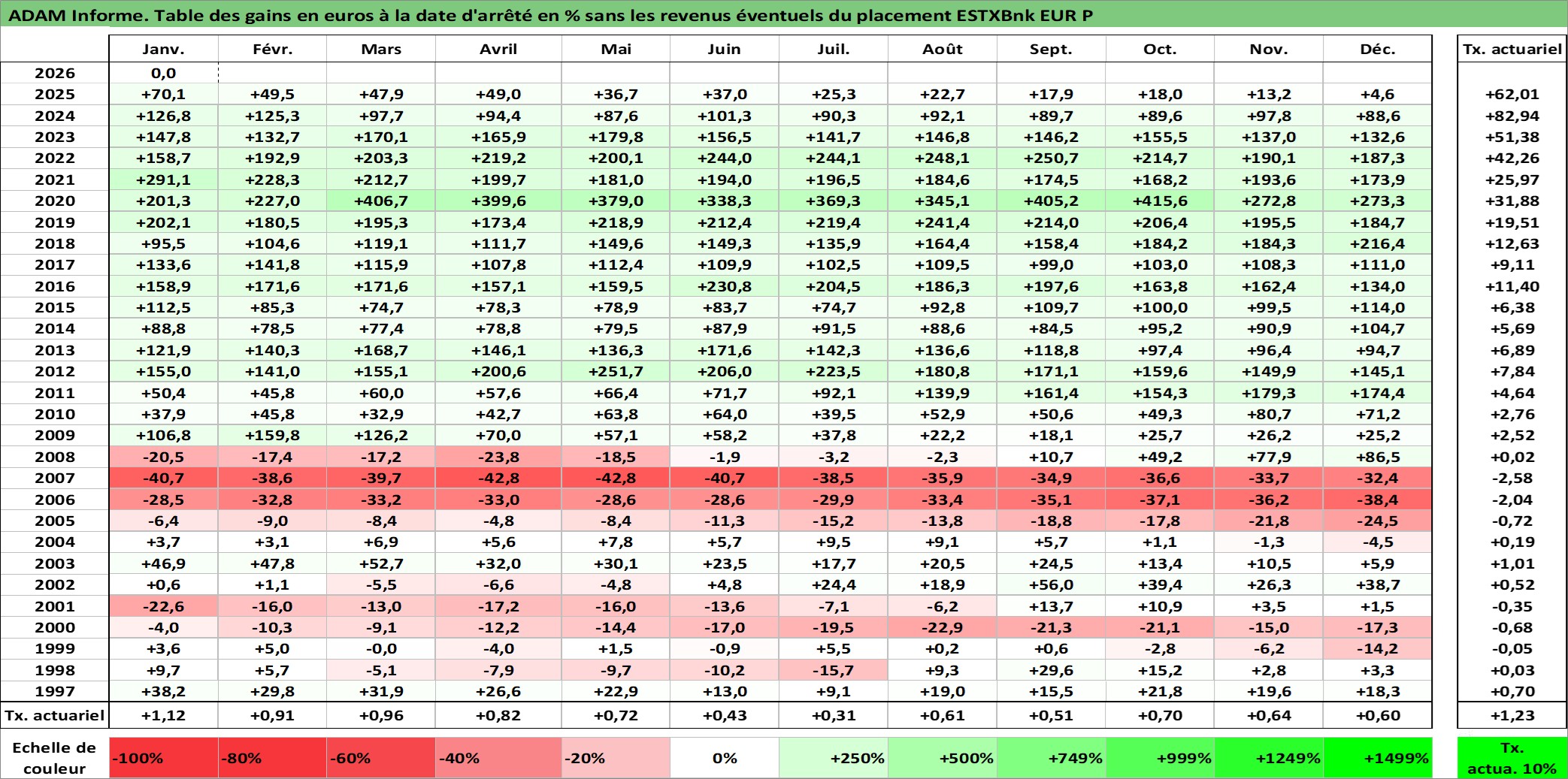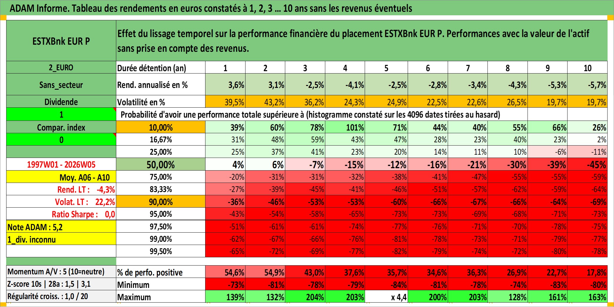 Site dédié aux investisseursPage dédiée sur site financeAnalyse des valorisations hebdomadaires de l'actif ESTXBnk EUR P. Cet actif est cote en EUR. Les valorisations couvrent les semaines 1997W01 a 2026W05. Les revenus de cet actif financier ne sont pas connus car non existants ou non disponibles sur le site Yahoo Finance. La note ESG de cet actif n'est pas connue.
