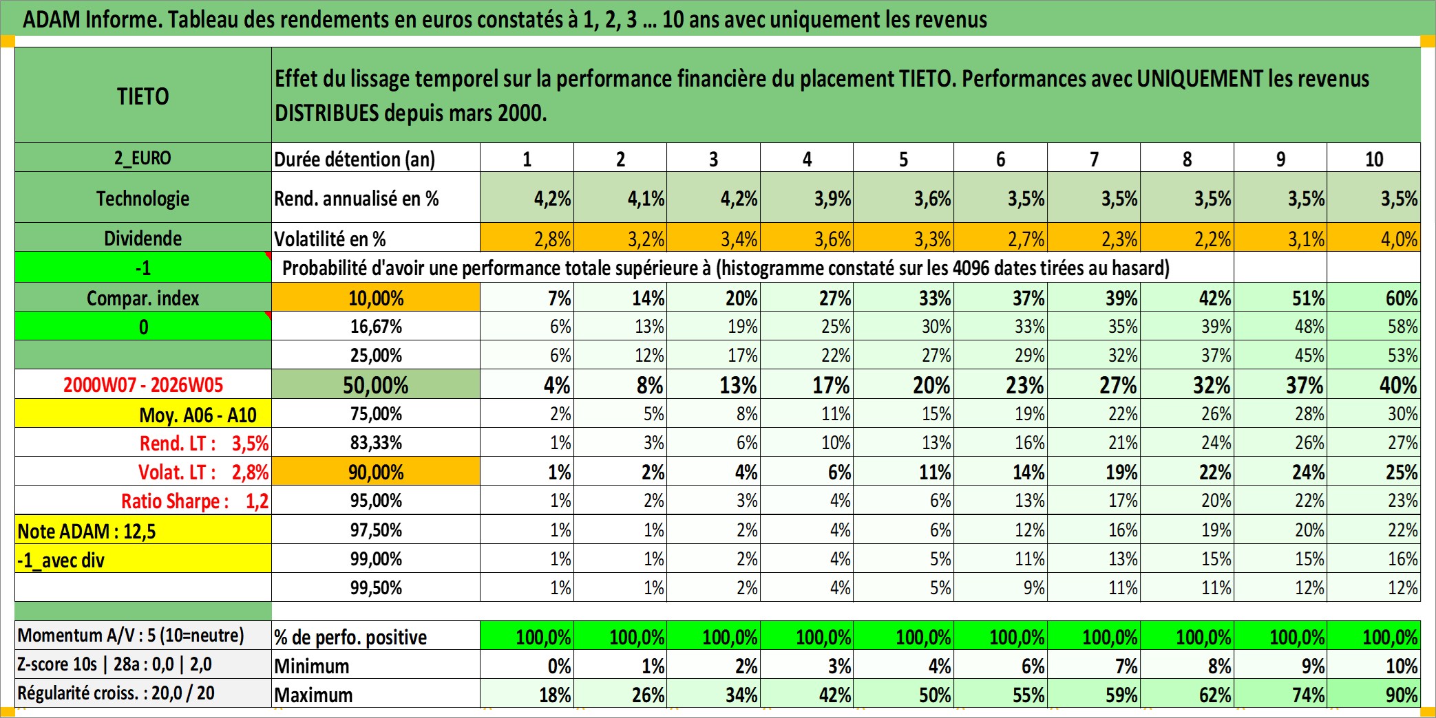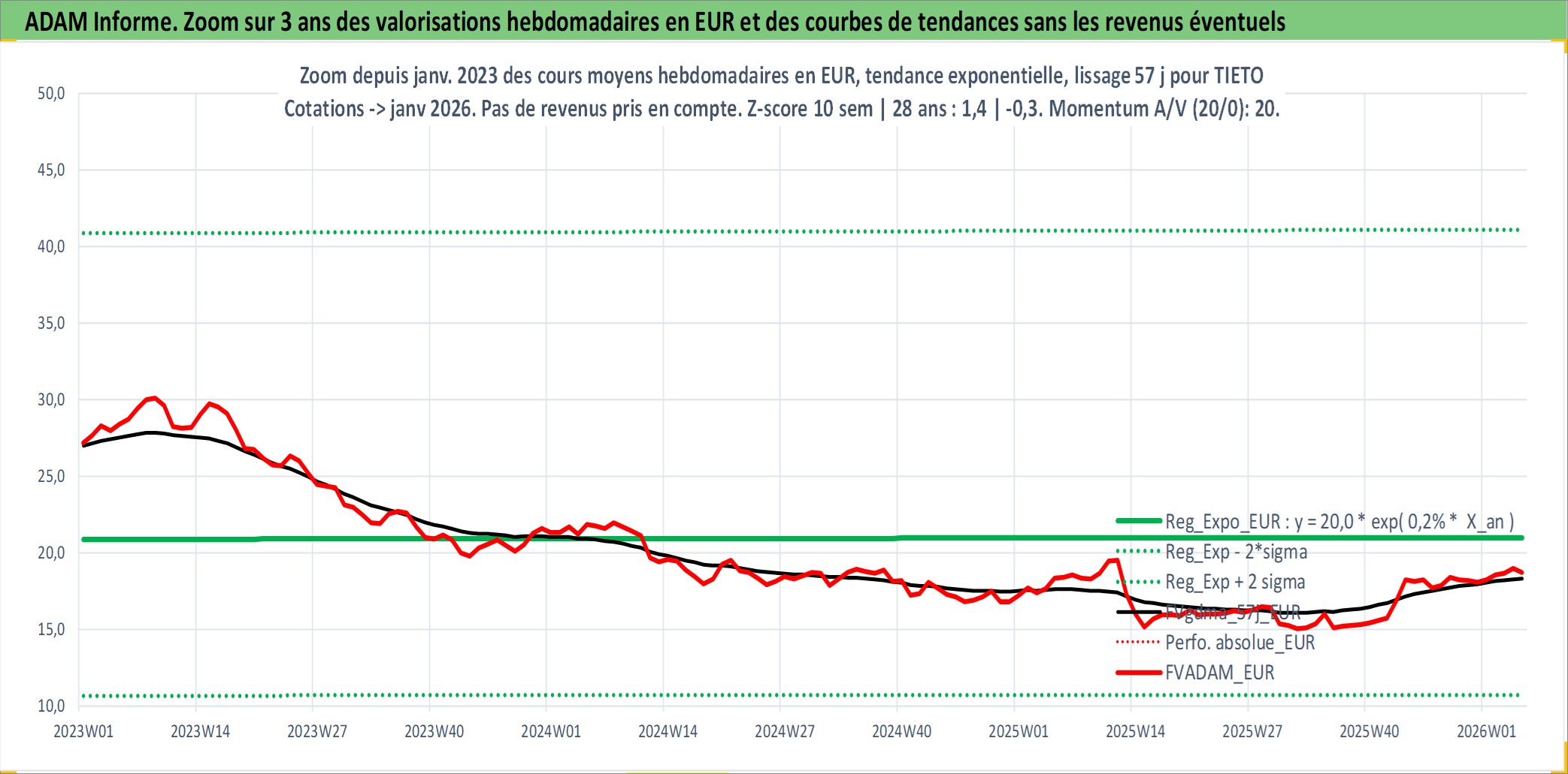 Site dédié aux investisseursPage dédiée sur site financeAnalyse des valorisations hebdomadaires de l'action TIETO. Cet actif est cote en EUR. Les valorisations couvrent les semaines 2000W07 a 2026W05. Les revenus de cet actif financier sont pris en compte depuis la semaine 2000W13. La note ESG de cet actif n'est pas connue.