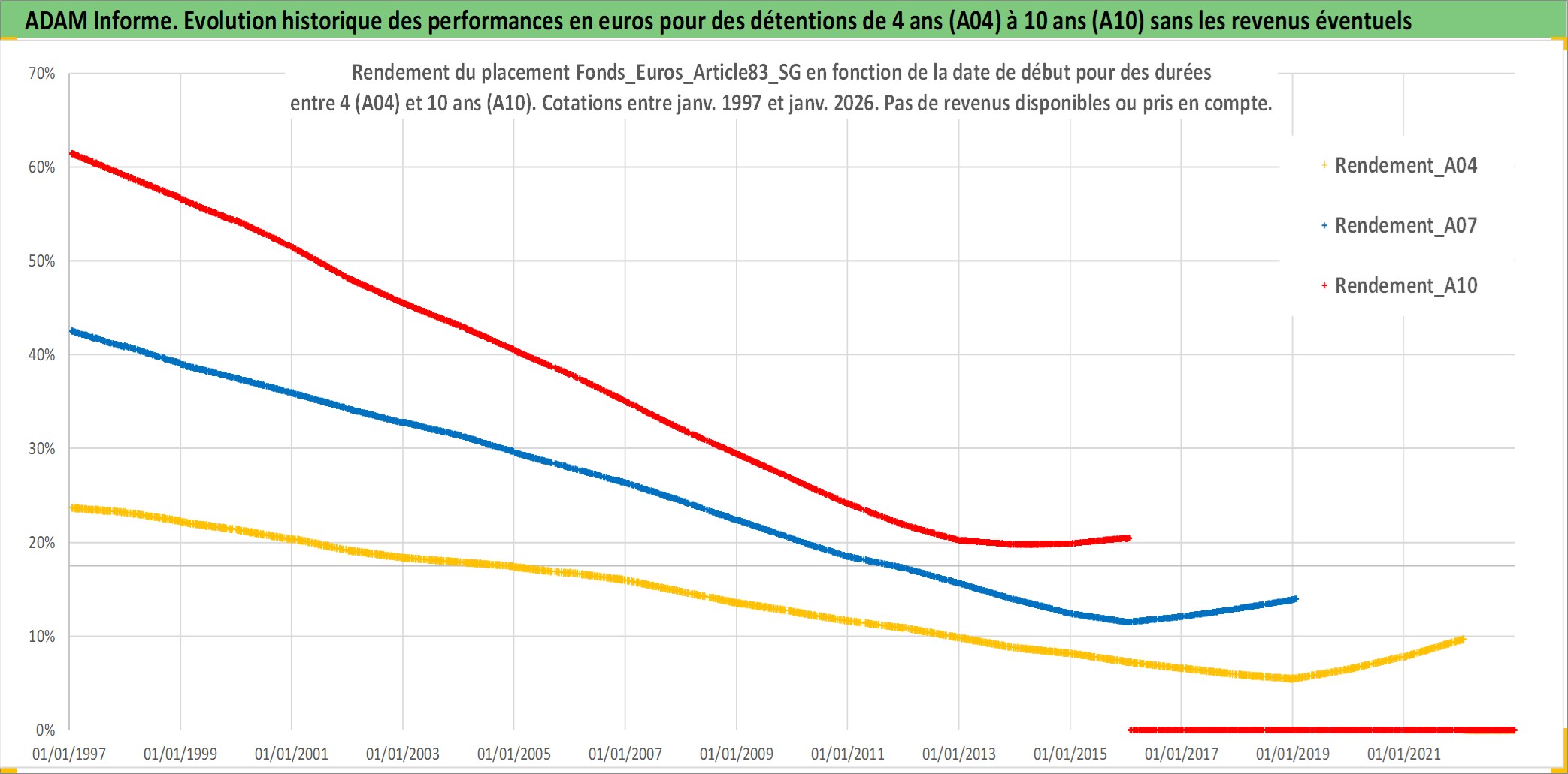 Site dédié aux investisseursPage dédiée sur site financeAnalyse des valorisations hebdomadaires de l'action Fonds_Euros_Article83_SG. Cet actif est cote en EUR. Les valorisations couvrent les semaines 1997W01 a 2026W05. Les revenus de cet actif financier ne sont pas connus car non existants ou non disponibles sur le site Yahoo Finance. La note ESG de cet actif n'est pas connue.