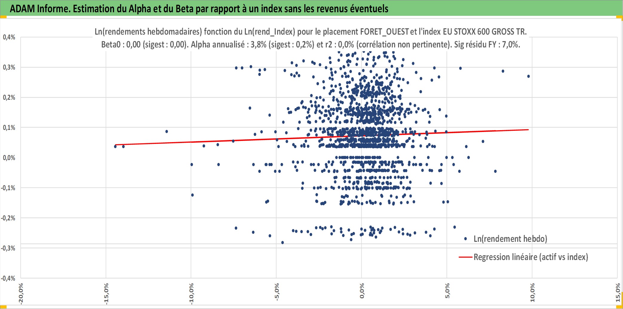 Site dédié aux investisseursPage dédiée sur site financeAnalyse des valorisations hebdomadaires de l'actif FORET_OUEST. Cet actif est cote en EUR. Les valorisations couvrent les semaines 1997W01 a 2026W05. Les fermages de ce bien foncier sont pris egaux a 2,5% annuels de la valeur venale du bien.