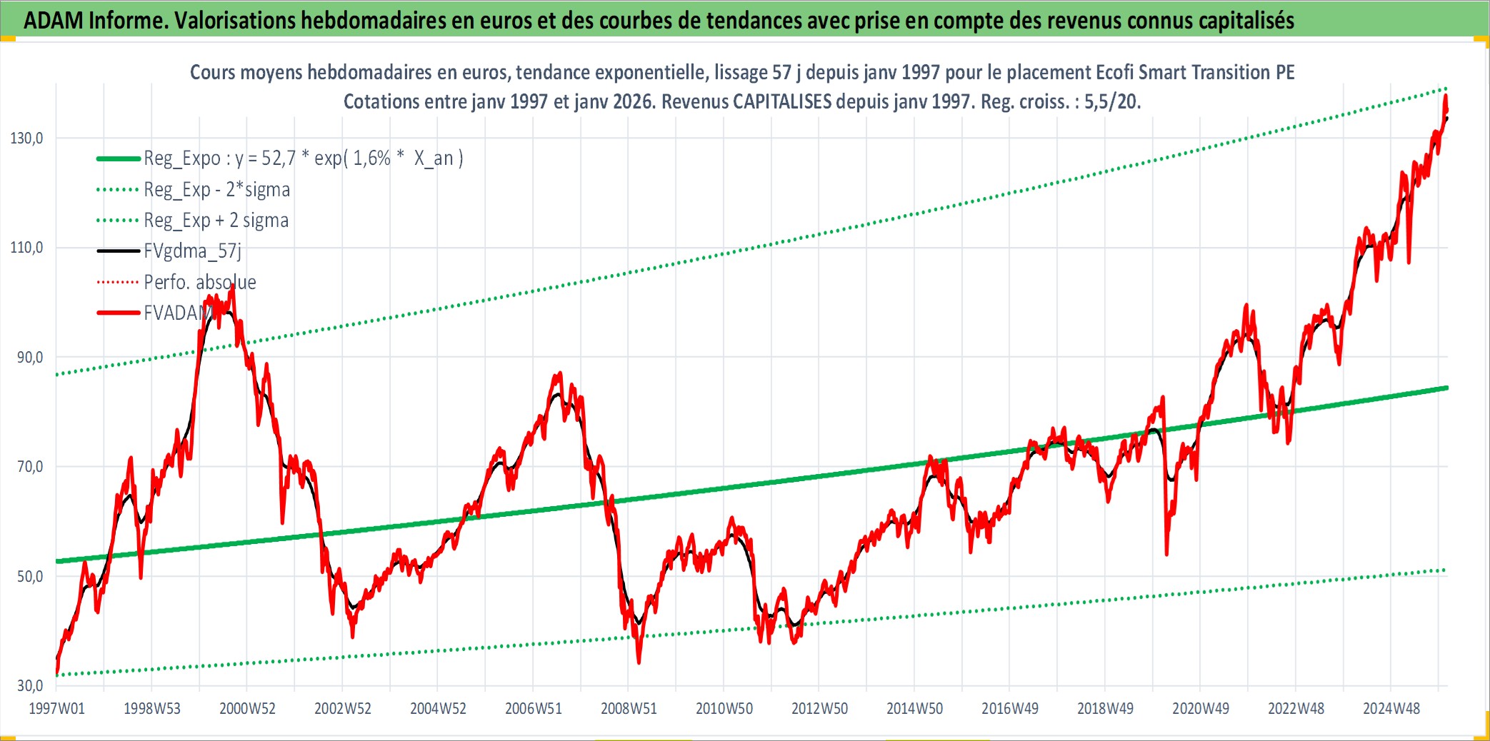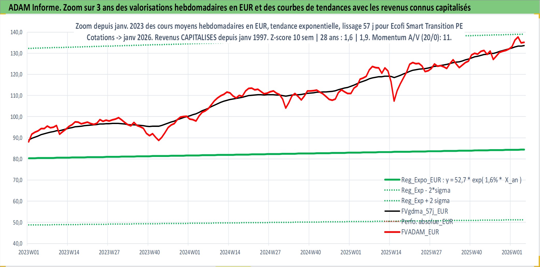 Site dédié aux investisseursPage dédiée sur site financeAnalyse des valorisations hebdomadaires du fonds Ecofi Smart Transition PEA_Acc. Cet actif est cote en EUR. Les valorisations couvrent les semaines 1997W01 a 2026W05. Les revenus de cet actif financier sont pris en compte depuis la semaine 1997W01. La note ESG de cet actif n'est pas connue.