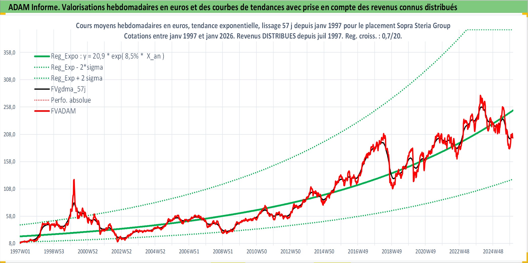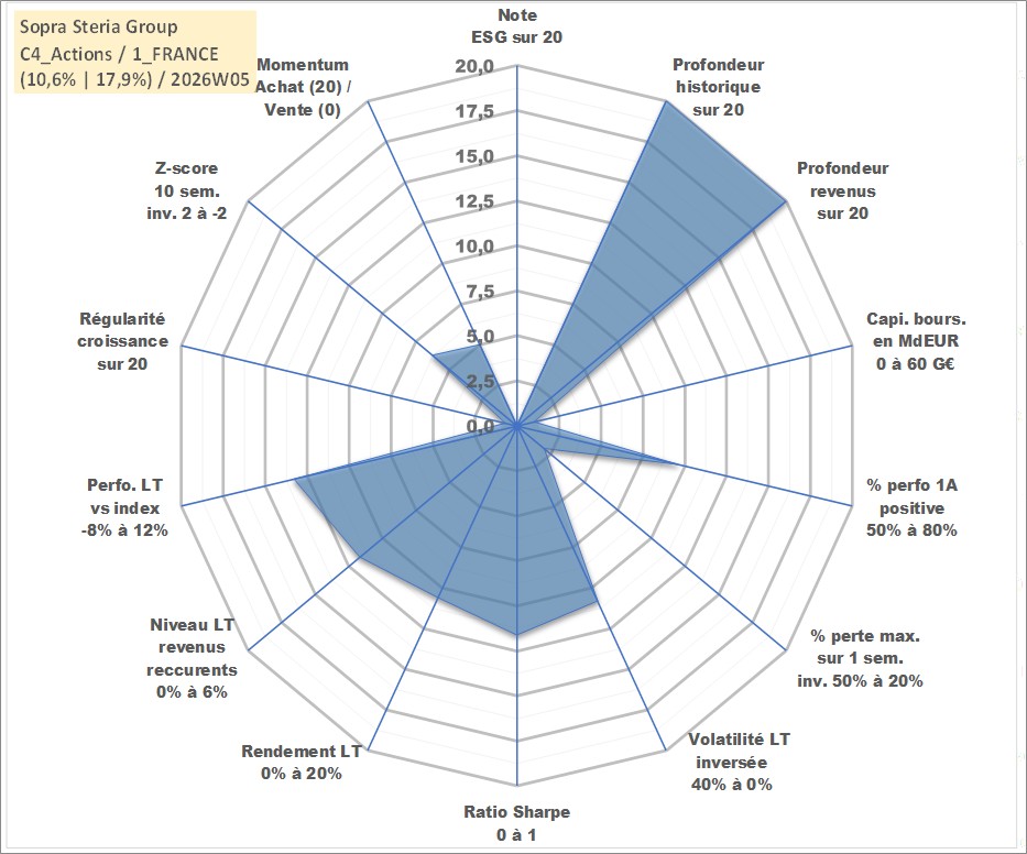 Site dédié aux investisseursPage dédiée sur site financeAnalyse des valorisations hebdomadaires de l'action Sopra Steria Group. Cet actif est cote en EUR. Les valorisations couvrent les semaines 1997W01 a 2026W05. Les revenus de cet actif financier sont pris en compte depuis la semaine 1997W29. La note ESG de cet actif n'est pas connue.