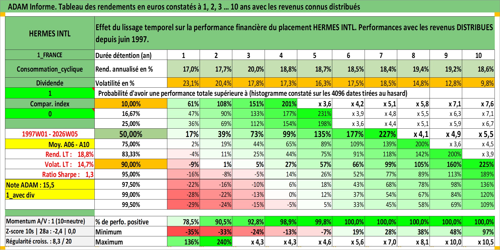Dernière perfo 10 ans en %
