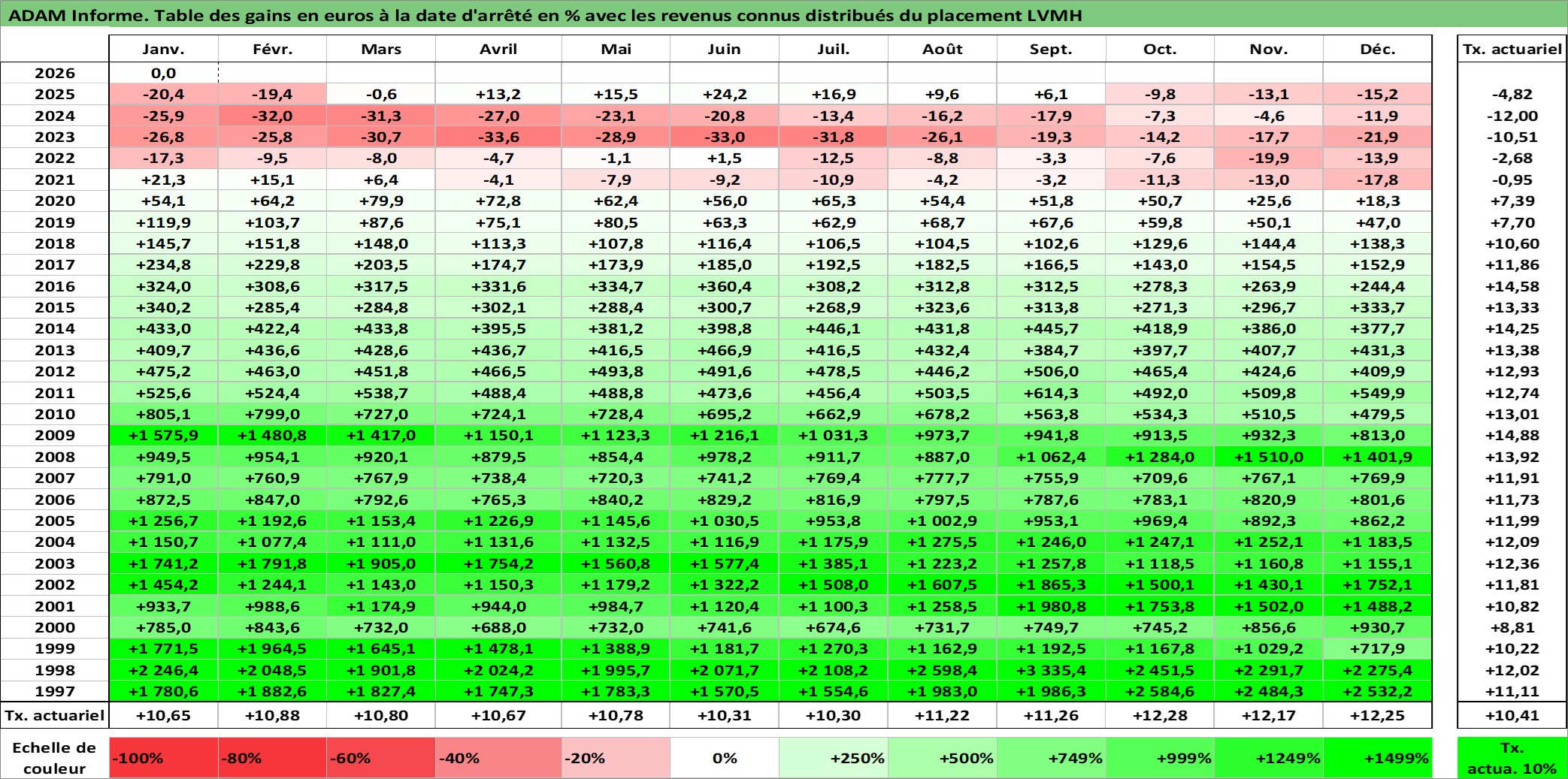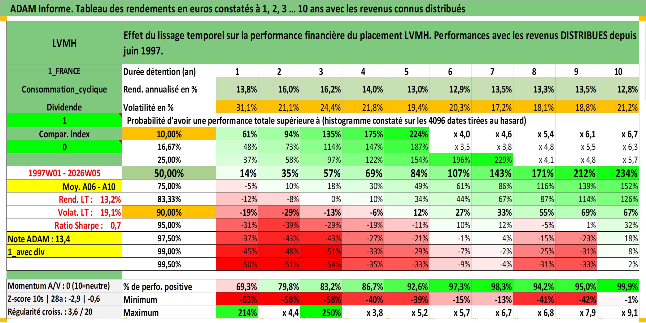Dernière perfo 10 ans en %