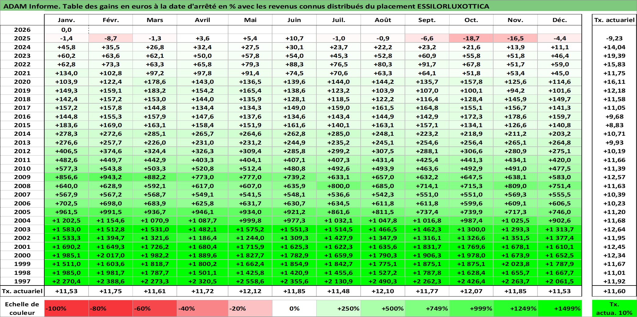 Dernière perfo 1 an en %