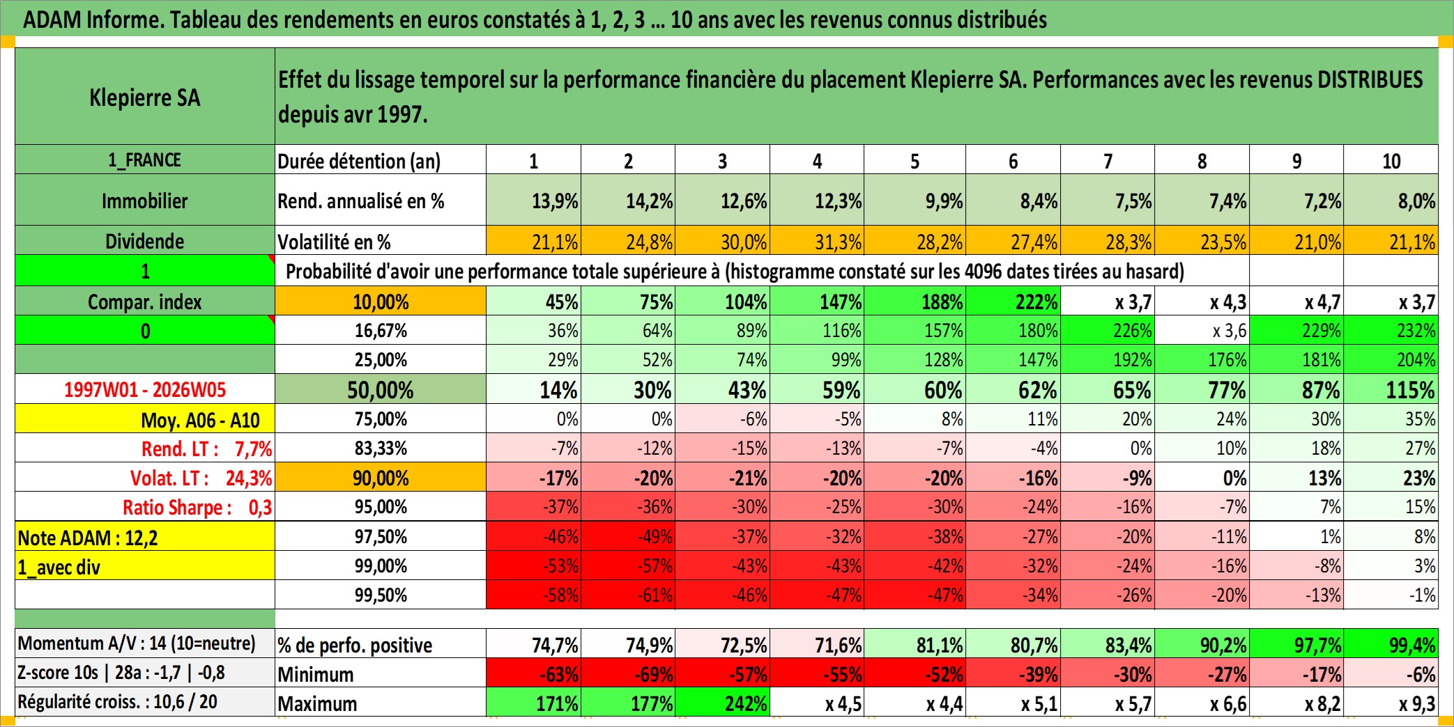 Dernière perfo 10 ans en %