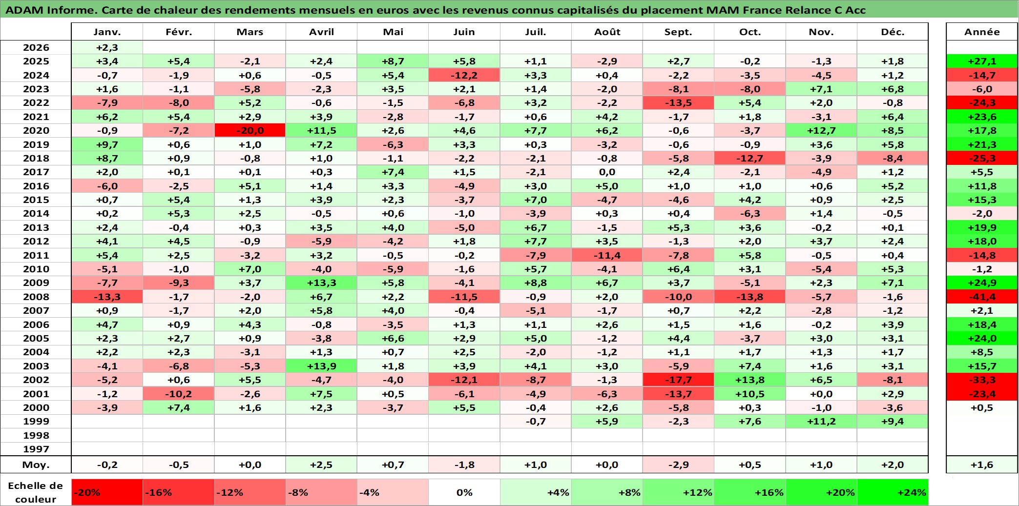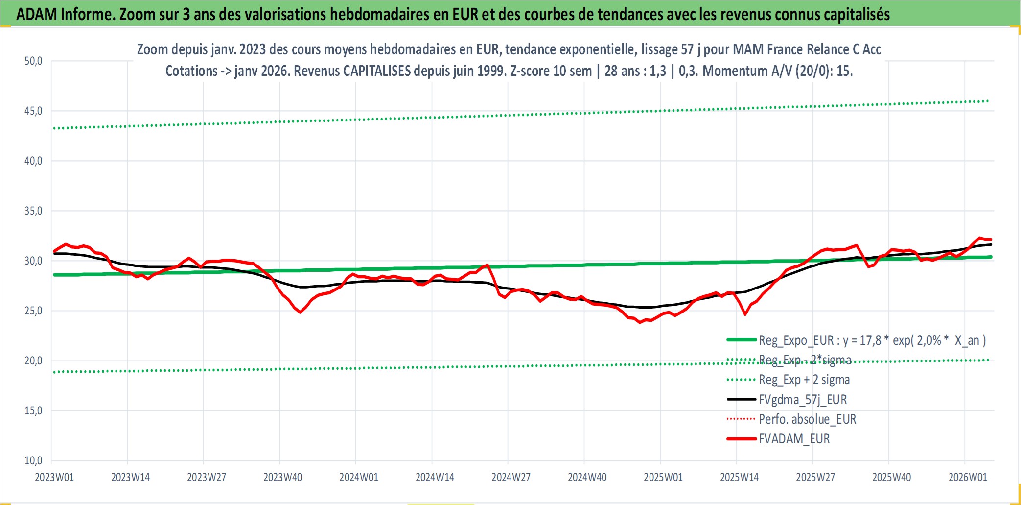 Site dédié aux investisseursPage dédiée sur site financeAnalyse des valorisations hebdomadaires du fonds MAM France Relance C Acc. Cet actif est cote en EUR. Les valorisations couvrent les semaines 1999W24 a 2026W05. Les revenus de cet actif financier sont pris en compte depuis la semaine 1999W24. La note ESG de cet actif n'est pas connue.