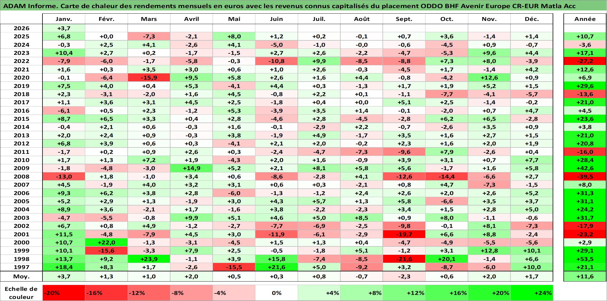 Site dédié aux investisseursPage dédiée sur site financeAnalyse des valorisations hebdomadaires du fonds ODDO BHF Avenir Europe CR-EUR Matla Acc. Cet actif est cote en EUR. Les valorisations couvrent les semaines 1997W01 a 2026W05. Les revenus de cet actif financier sont pris en compte depuis la semaine 1997W01. La note ESG de cet actif n'est pas connue.