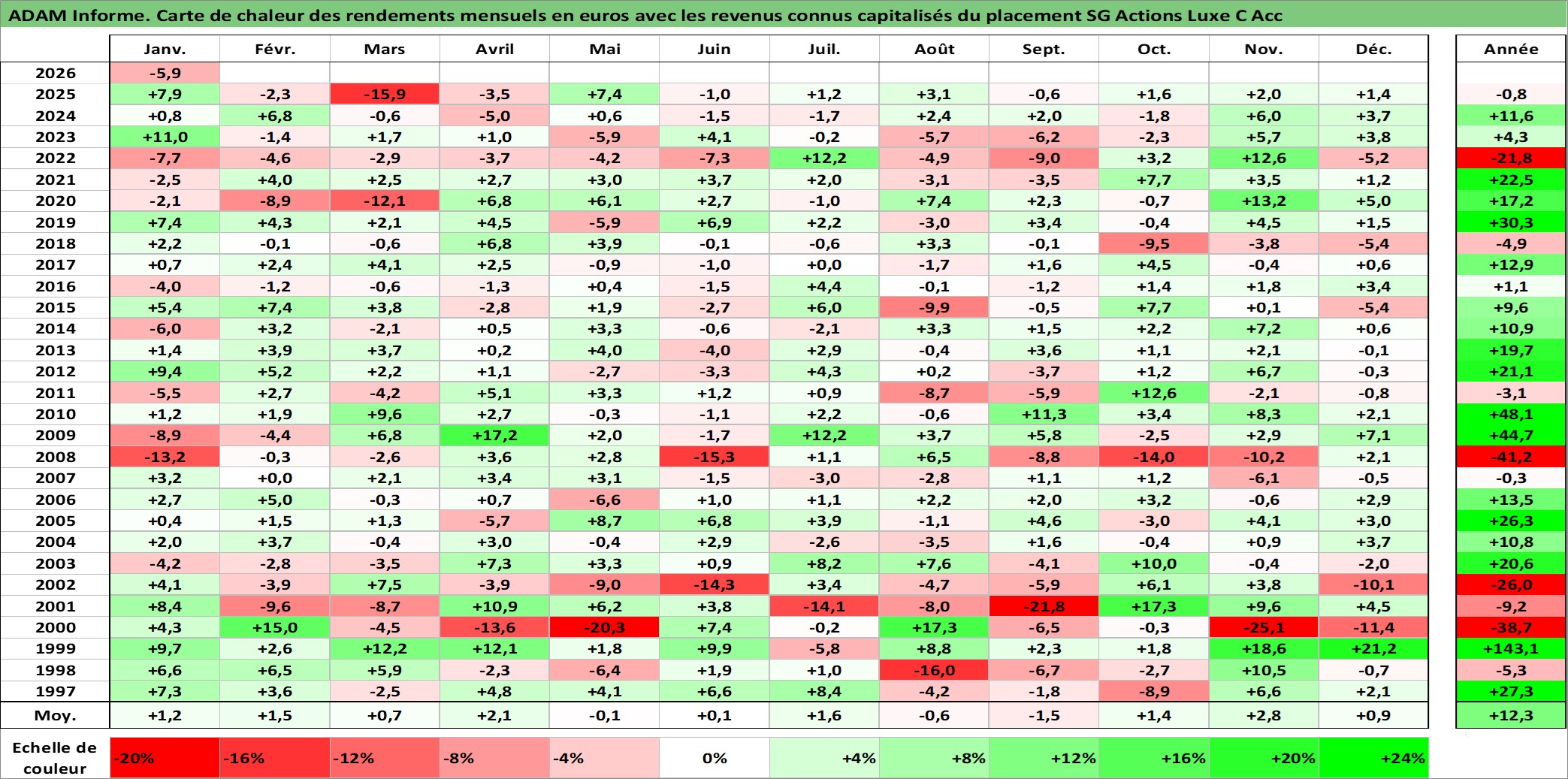 Dernière perfo 1 an en %