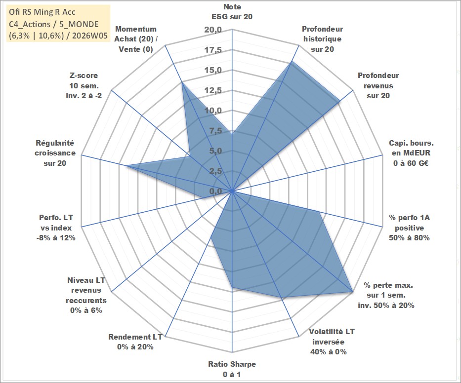 Site dédié aux investisseursPage dédiée sur site financeAnalyse des valorisations hebdomadaires du fonds Ofi RS Ming R Acc. Cet actif est cote en EUR. Les valorisations couvrent les semaines 2000W32 a 2026W05. Les revenus de cet actif financier sont pris en compte depuis la semaine 2000W32. La note globale ESG de cet actif est estimee a 7.0 (apres rebasage entre 0 et 20).