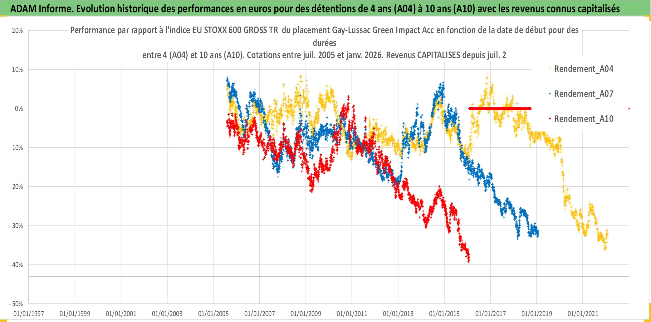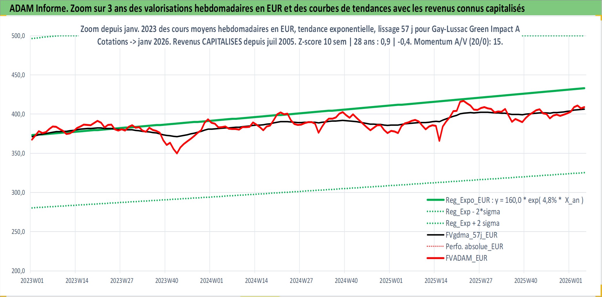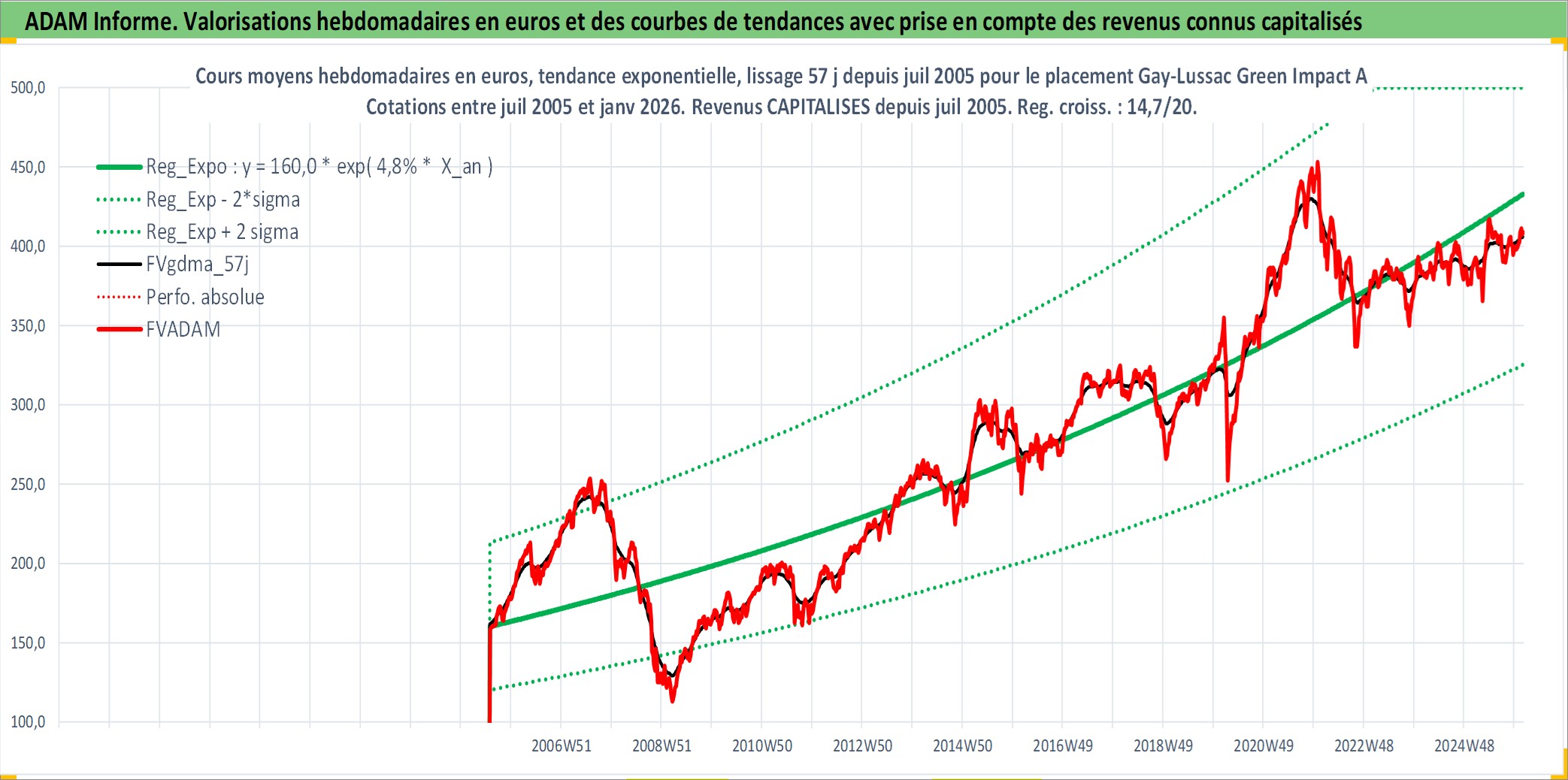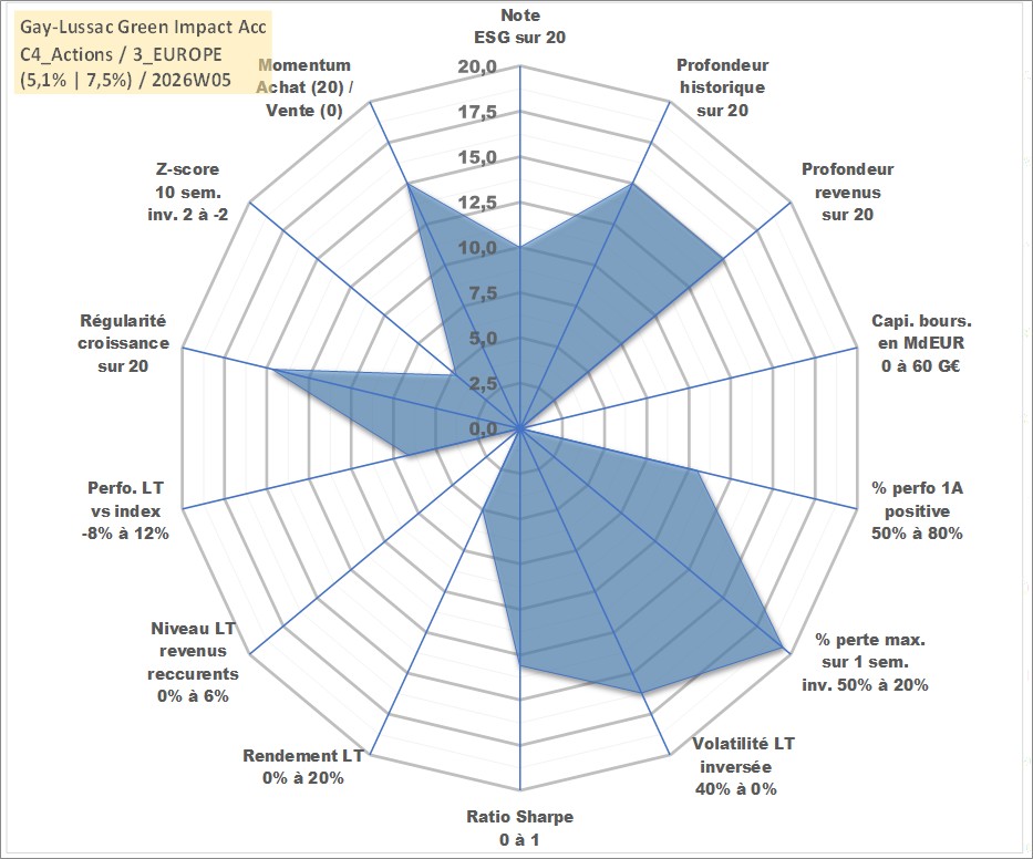 Site dédié aux investisseursPage dédiée sur site financeAnalyse des valorisations hebdomadaires du fonds Gay-Lussac Green Impact Acc. Cet actif est cote en EUR. Les valorisations couvrent les semaines 2005W29 a 2026W05. Les revenus de cet actif financier sont pris en compte depuis la semaine 2005W29. La note globale ESG de cet actif est estimee a 10.0 (apres rebasage entre 0 et 20).
