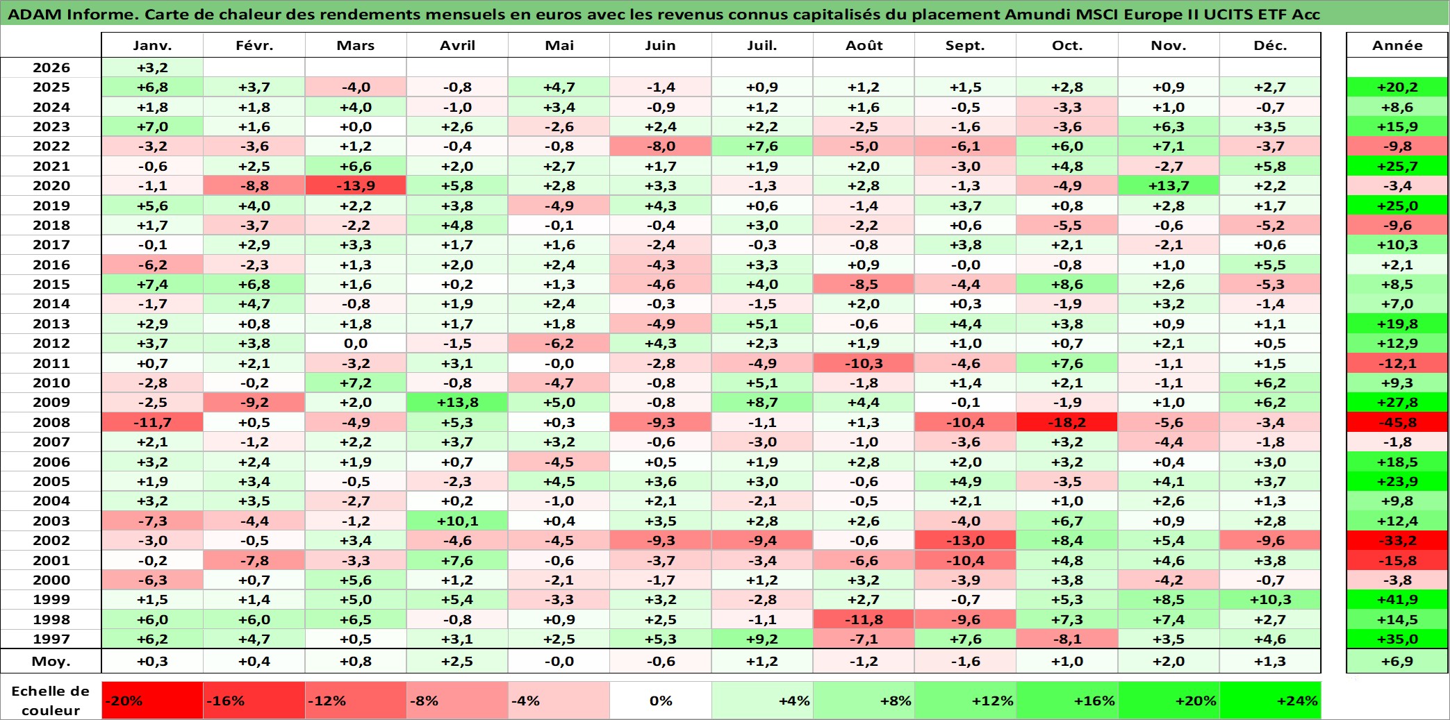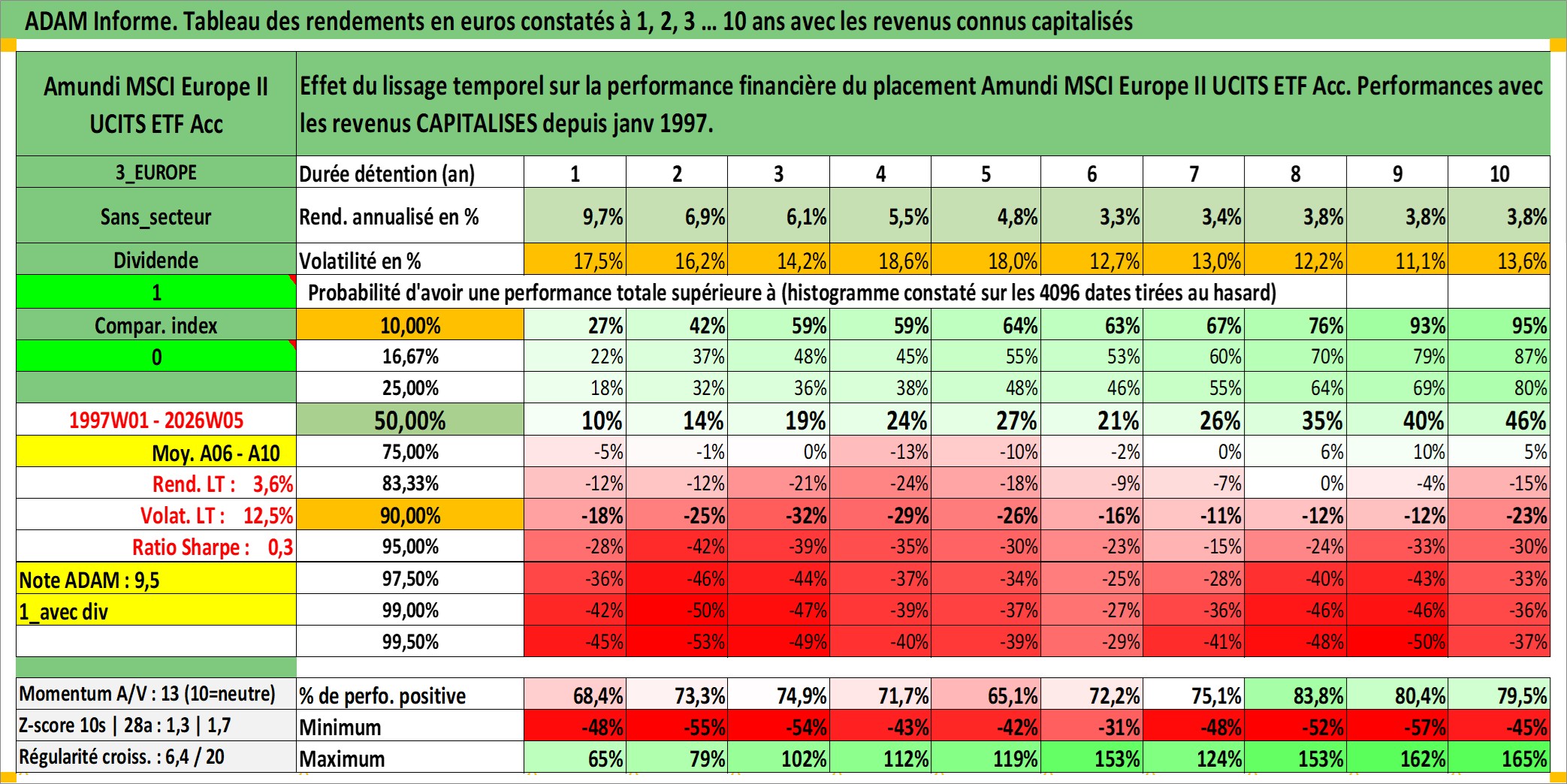 Site dédié aux investisseursPage dédiée sur site financeAnalyse des valorisations hebdomadaires du fonds Amundi MSCI Europe II UCITS ETF Acc. Cet actif est cote en EUR. Les valorisations couvrent les semaines 1997W01 a 2026W05. Les revenus de cet actif financier sont pris en compte depuis la semaine 1997W01. La note ESG de cet actif n'est pas connue.