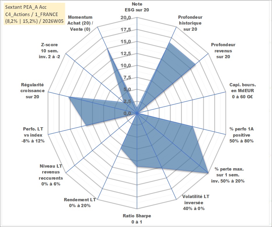 Site dédié aux investisseursPage dédiée sur site financeAnalyse des valorisations hebdomadaires du fonds Sextant PEA_A Acc. Cet actif est cote en EUR. Les valorisations couvrent les semaines 2002W47 a 2026W05. Les revenus de cet actif financier sont pris en compte depuis la semaine 2002W47. La note globale ESG de cet actif est estimee a 1.0 (apres rebasage entre 0 et 20).