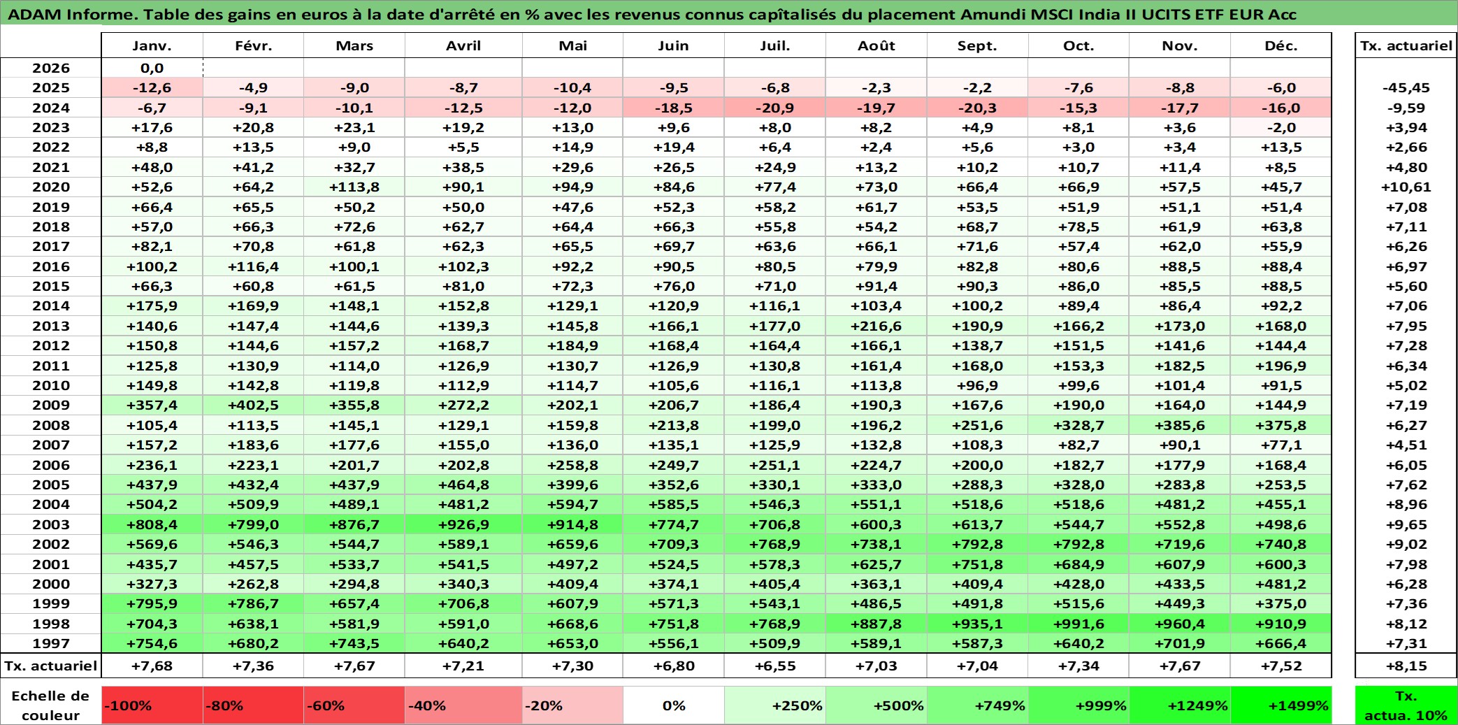 Dernière perfo 1 an en %