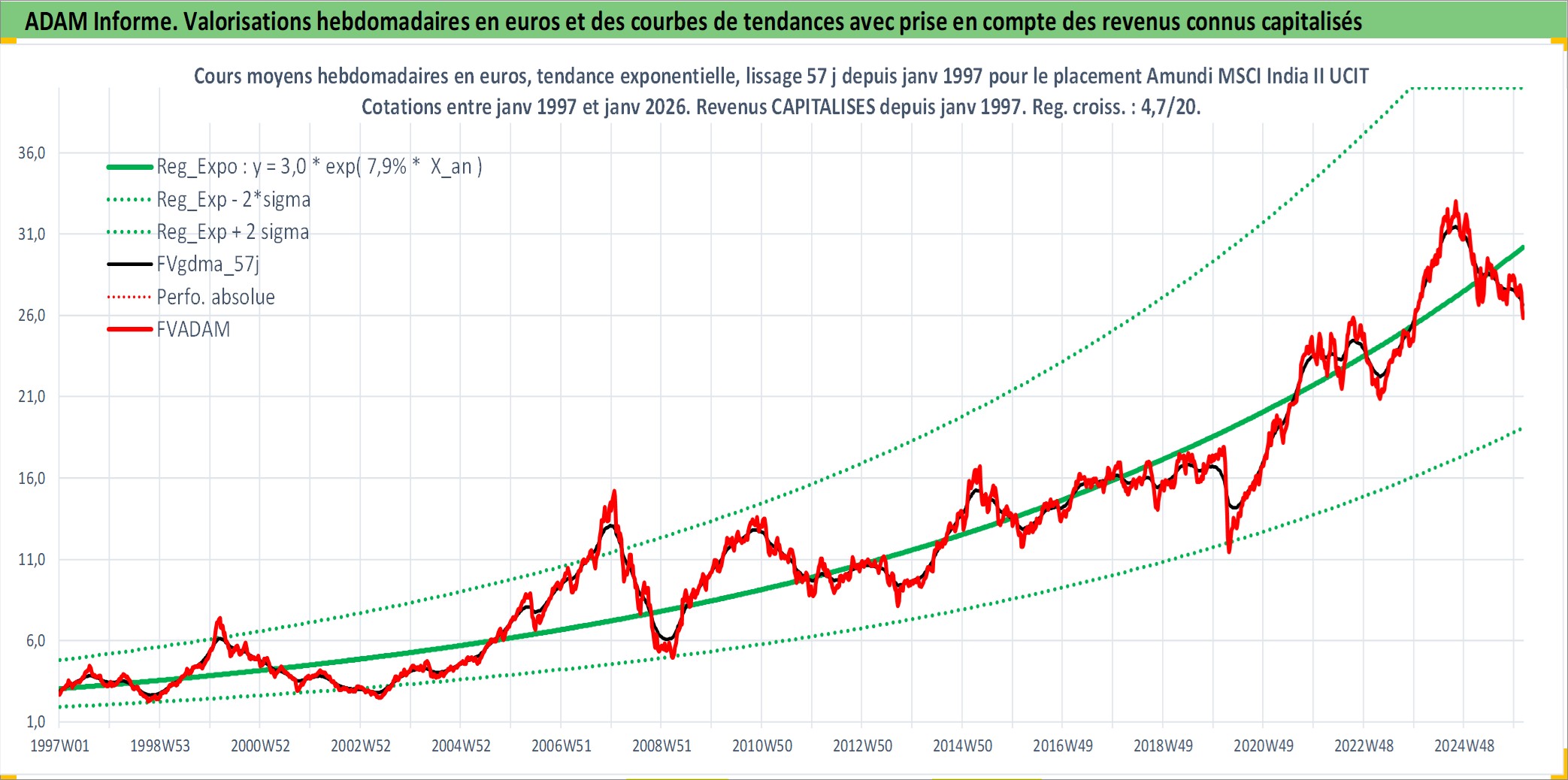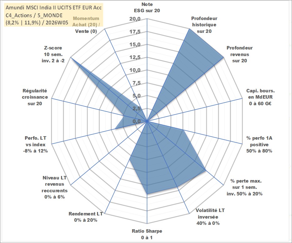 Site dédié aux investisseursPage dédiée sur site financeAnalyse des valorisations hebdomadaires du fonds Amundi MSCI India II UCITS ETF EUR Acc. Cet actif est cote en EUR. Les valorisations couvrent les semaines 1997W01 a 2026W05. Les revenus de cet actif financier sont pris en compte depuis la semaine 1997W01. La note ESG de cet actif n'est pas connue.