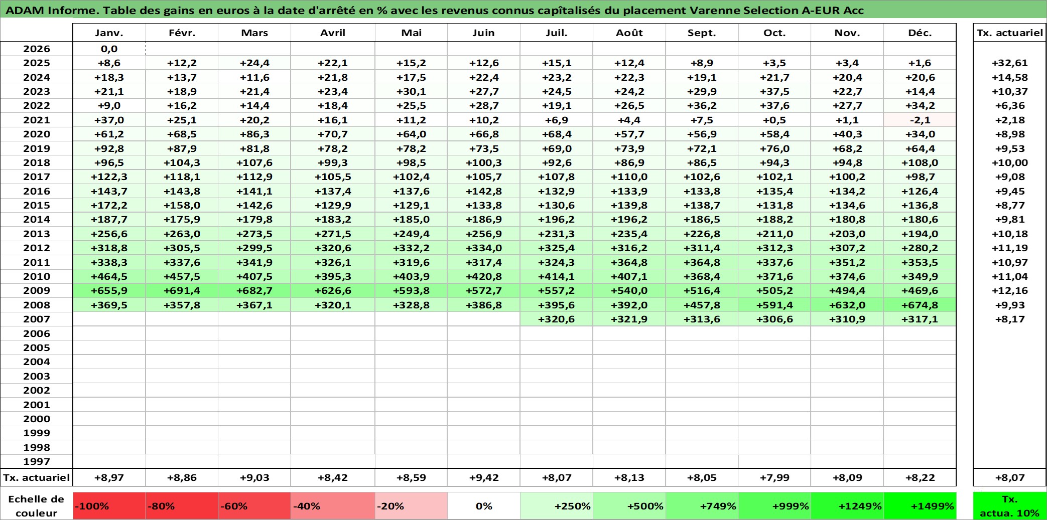 Dernière perfo 10 ans en %