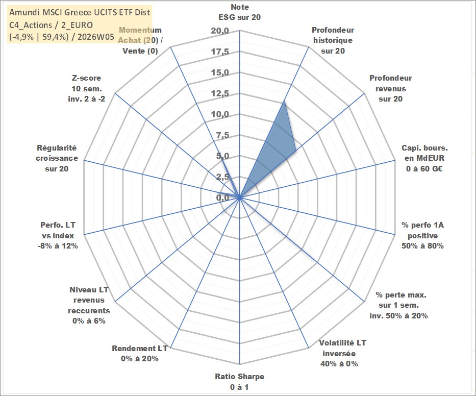 Site dédié aux investisseursPage dédiée sur site financeAnalyse des valorisations hebdomadaires du fonds Amundi MSCI Greece UCITS ETF Dist. Cet actif est cote en EUR. Les valorisations couvrent les semaines 2008W05 a 2026W05. Les revenus de cet actif financier sont pris en compte depuis la semaine 2013W28. La note ESG de cet actif n'est pas connue.