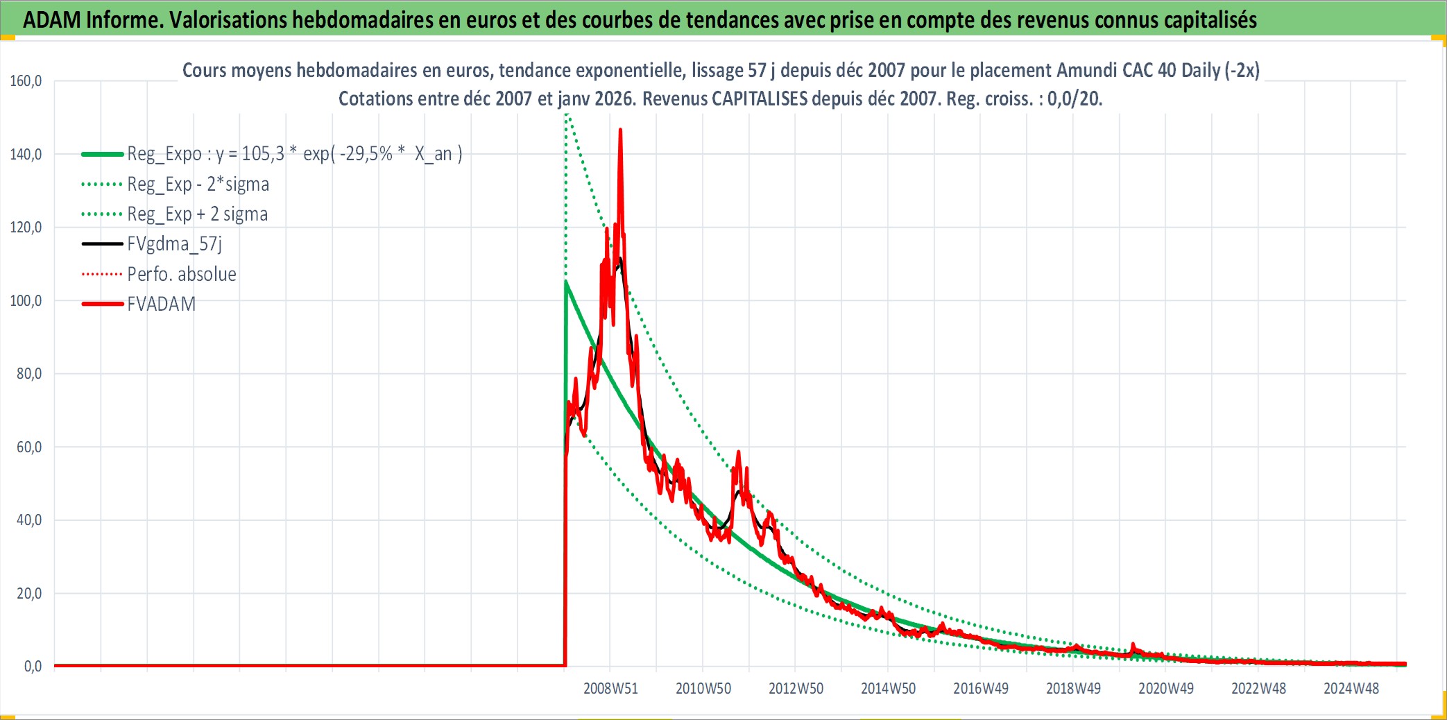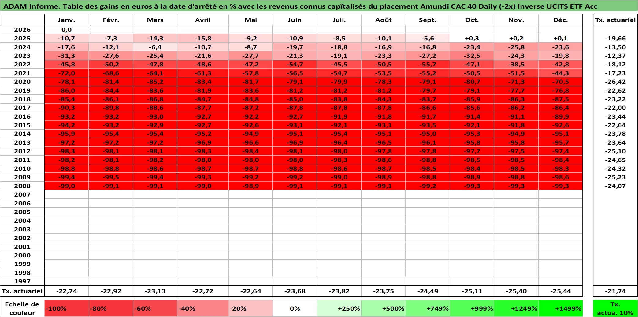 Site dédié aux investisseursPage dédiée sur site financeAnalyse des valorisations hebdomadaires du fonds Amundi CAC 40 Daily (-2x) Inverse UCITS ETF Acc. Cet actif est cote en EUR. Les valorisations couvrent les semaines 2008W01 a 2026W05. Les revenus de cet actif financier sont pris en compte depuis la semaine 2008W01. La note ESG de cet actif n'est pas connue.