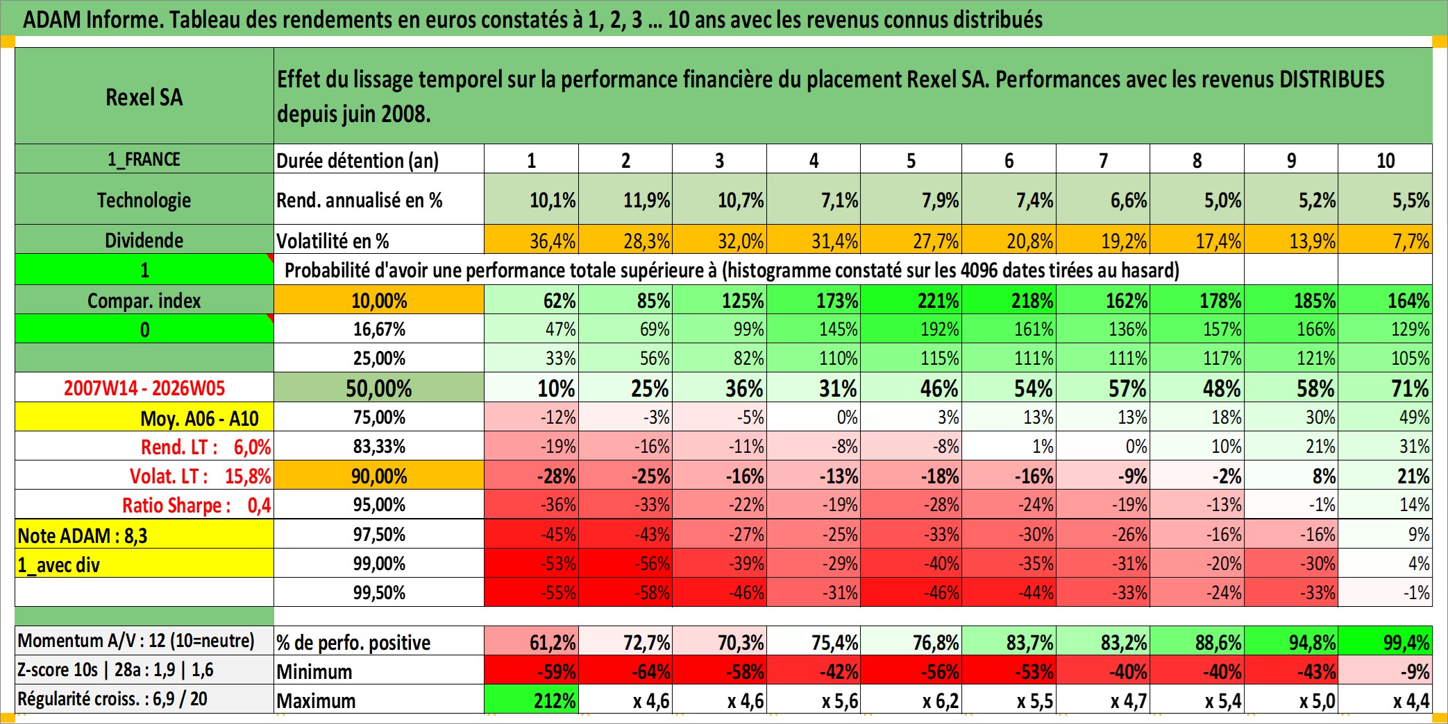 Site dédié aux investisseursPage dédiée sur site financeAnalyse des valorisations hebdomadaires de l'action Rexel SA. Cet actif est cote en EUR. Les valorisations couvrent les semaines 2007W14 a 2026W05. Les revenus de cet actif financier sont pris en compte depuis la semaine 2008W26. La note ESG de cet actif n'est pas connue.