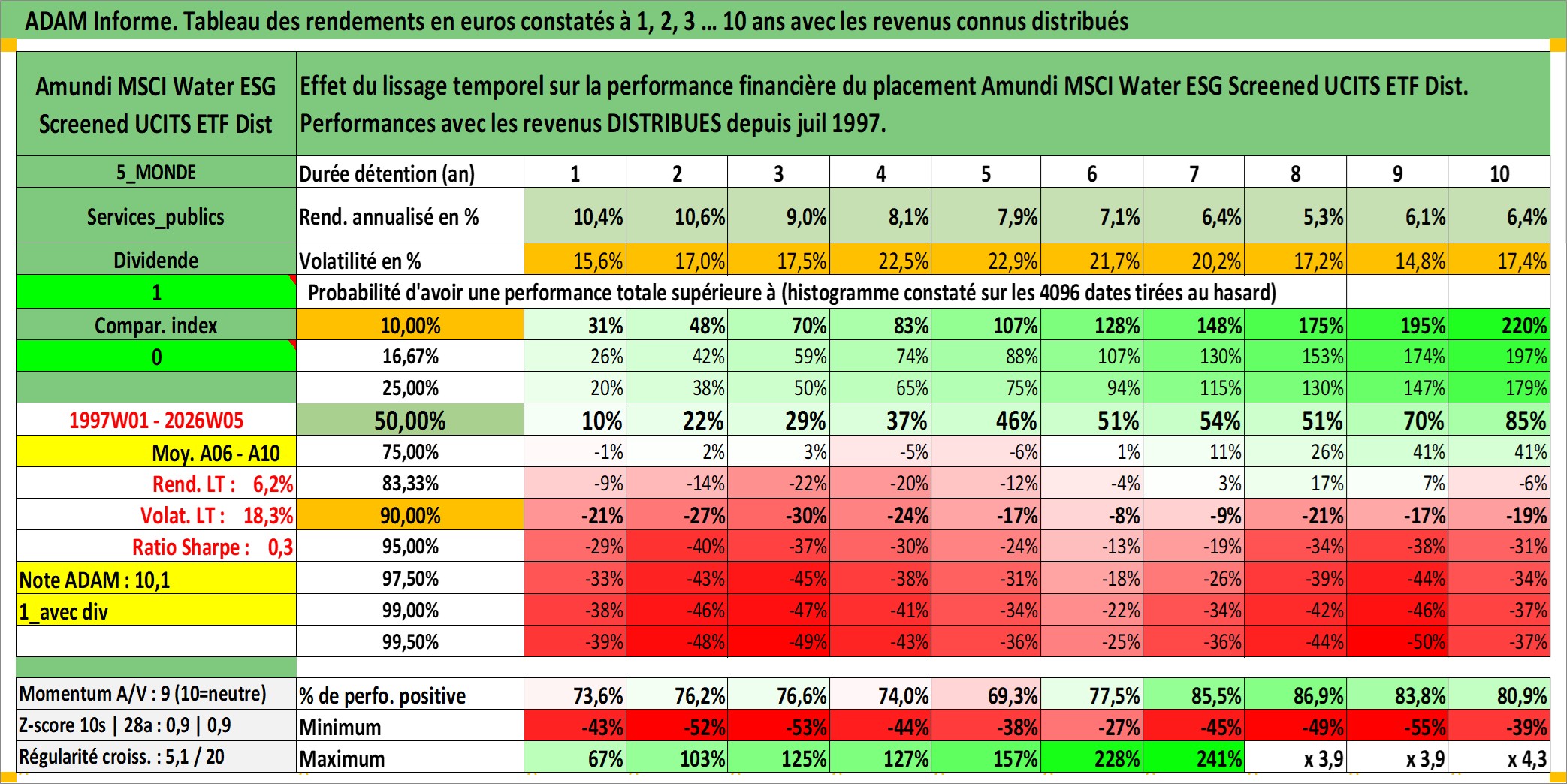 Site dédié aux investisseursPage dédiée sur site financeAnalyse des valorisations hebdomadaires du fonds Amundi MSCI Water ESG Screened UCITS ETF Dist. Cet actif est cote en EUR. Les valorisations couvrent les semaines 1997W01 a 2026W05. Les revenus de cet actif financier sont pris en compte depuis la semaine 1997W28. La note ESG de cet actif n'est pas connue.