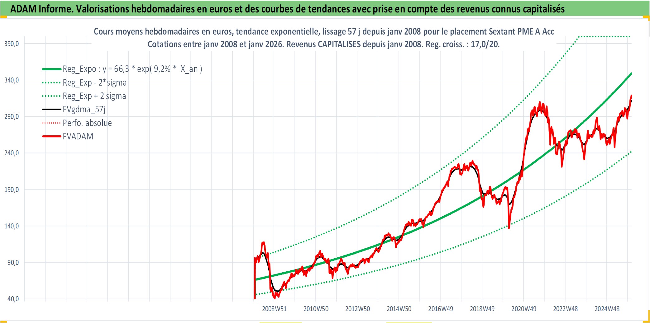 Site dédié aux investisseursPage dédiée sur site financeAnalyse des valorisations hebdomadaires du fonds Sextant PME A Acc. Cet actif est cote en EUR. Les valorisations couvrent les semaines 2008W03 a 2026W05. Les revenus de cet actif financier sont pris en compte depuis la semaine 2008W03. La note globale ESG de cet actif est estimee a 7.0 (apres rebasage entre 0 et 20).
