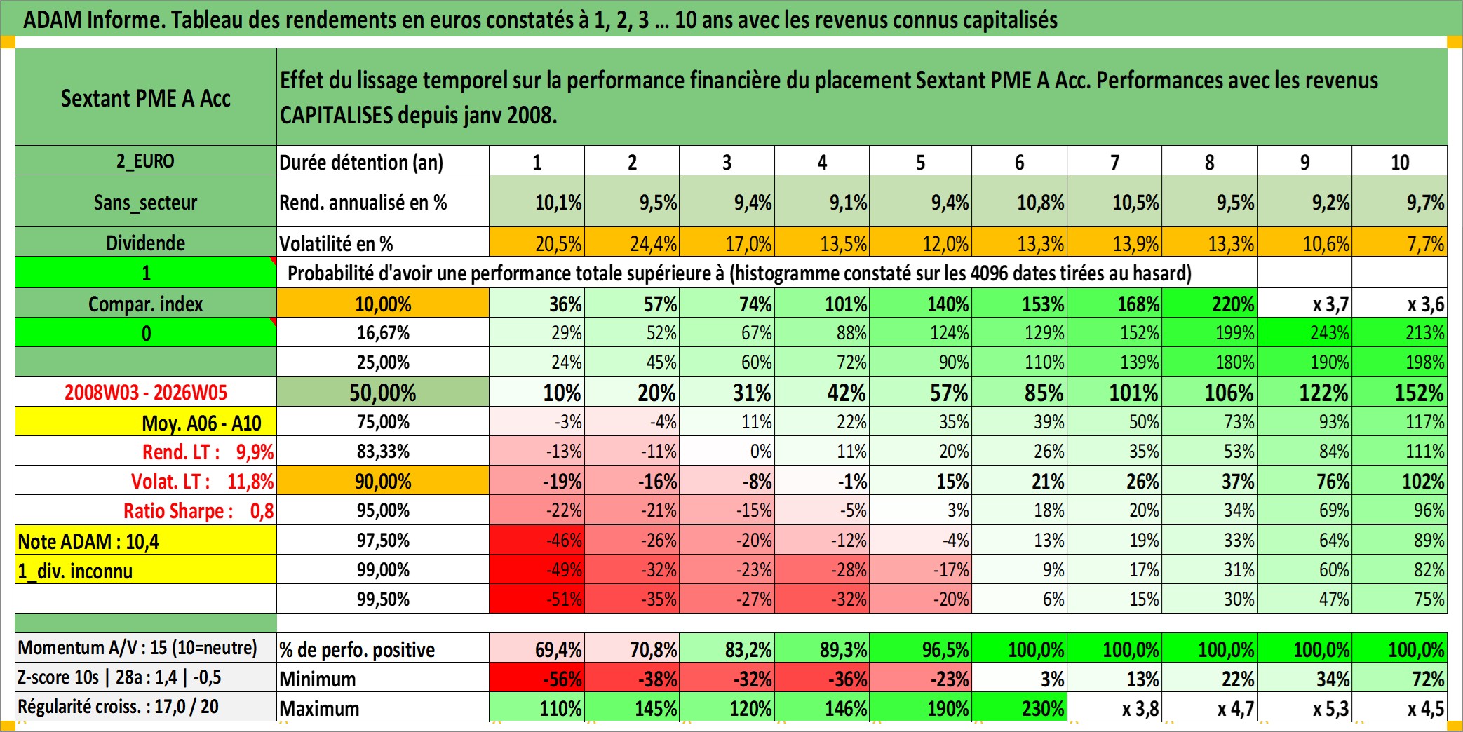 Dernière perfo 10 ans en %