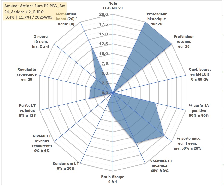 Site dédié aux investisseursPage dédiée sur site financeAnalyse des valorisations hebdomadaires du fonds Amundi Actions Euro PC PEA_Acc. Cet actif est cote en EUR. Les valorisations couvrent les semaines 1997W01 a 2026W05. Les revenus de cet actif financier sont pris en compte depuis la semaine 1997W01. La note ESG de cet actif n'est pas connue.