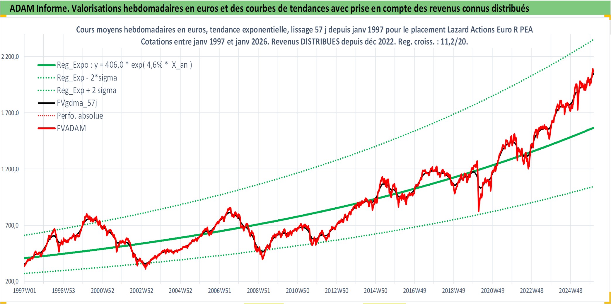 Site dédié aux investisseursPage dédiée sur site financeAnalyse des valorisations hebdomadaires du fonds Lazard Actions Euro R PEA_Dist. Cet actif est cote en EUR. Les valorisations couvrent les semaines 1997W01 a 2026W05. Les revenus de cet actif financier sont pris en compte depuis la semaine 2022W51. La note ESG de cet actif n'est pas connue.