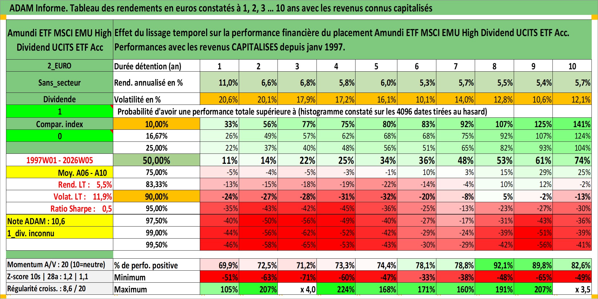 Dernière perfo 10 ans en %