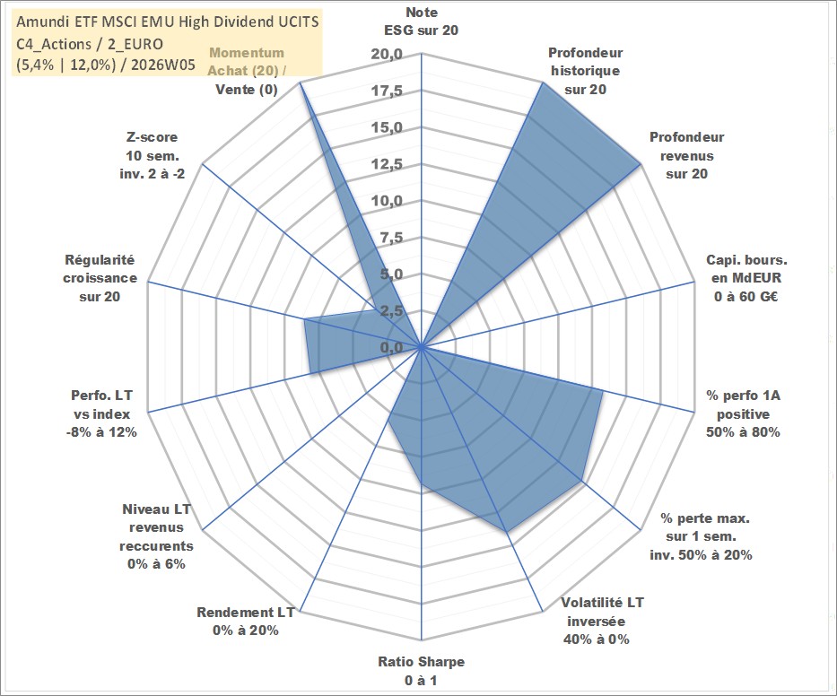 Site dédié aux investisseursPage dédiée sur site financeAnalyse des valorisations hebdomadaires du fonds Amundi ETF MSCI EMU High Dividend UCITS ETF Acc. Cet actif est cote en EUR. Les valorisations couvrent les semaines 1997W01 a 2026W05. Les revenus de cet actif financier sont pris en compte depuis la semaine 1997W01. La note ESG de cet actif n'est pas connue.