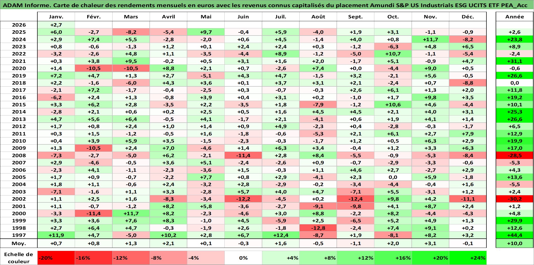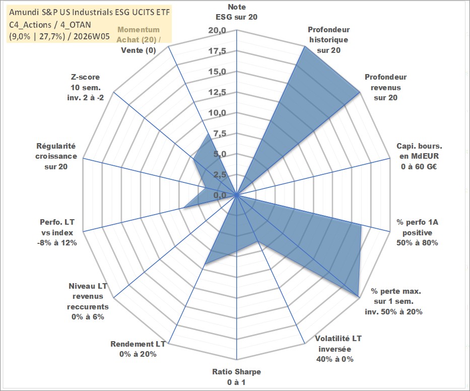 Site dédié aux investisseursPage dédiée sur site financeAnalyse des valorisations hebdomadaires du fonds Amundi S&P US Industrials ESG UCITS ETF PEA_Acc. Cet actif est cote en EUR. Les valorisations couvrent les semaines 1997W01 a 2026W05. Les revenus de cet actif financier sont pris en compte depuis la semaine 1997W01. La note ESG de cet actif n'est pas connue.