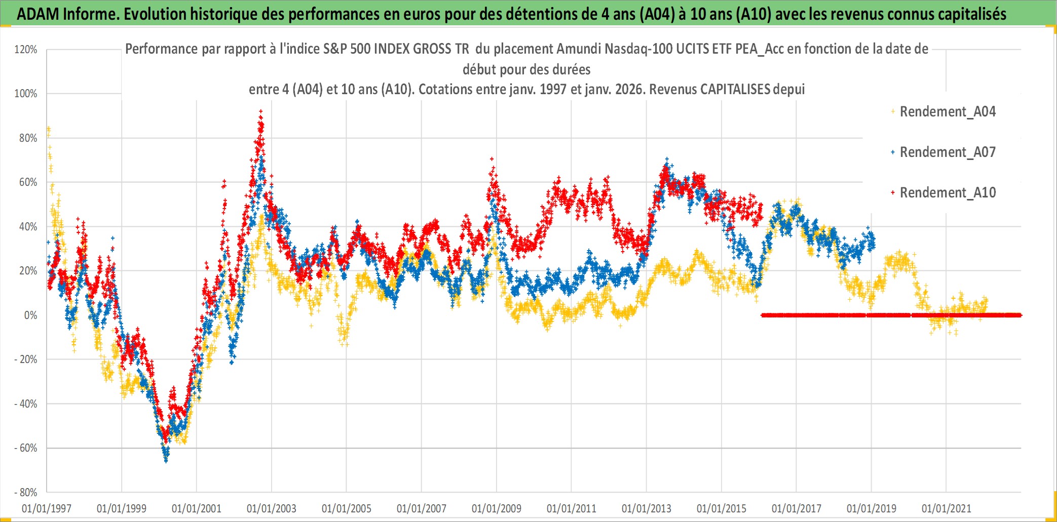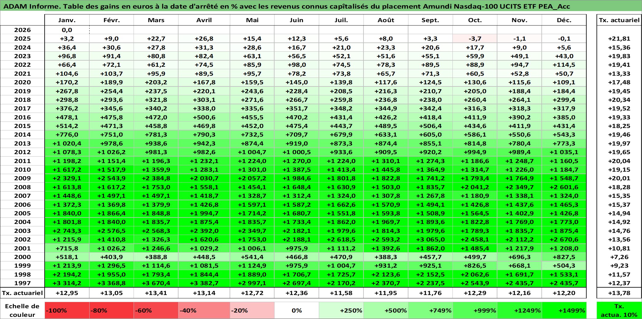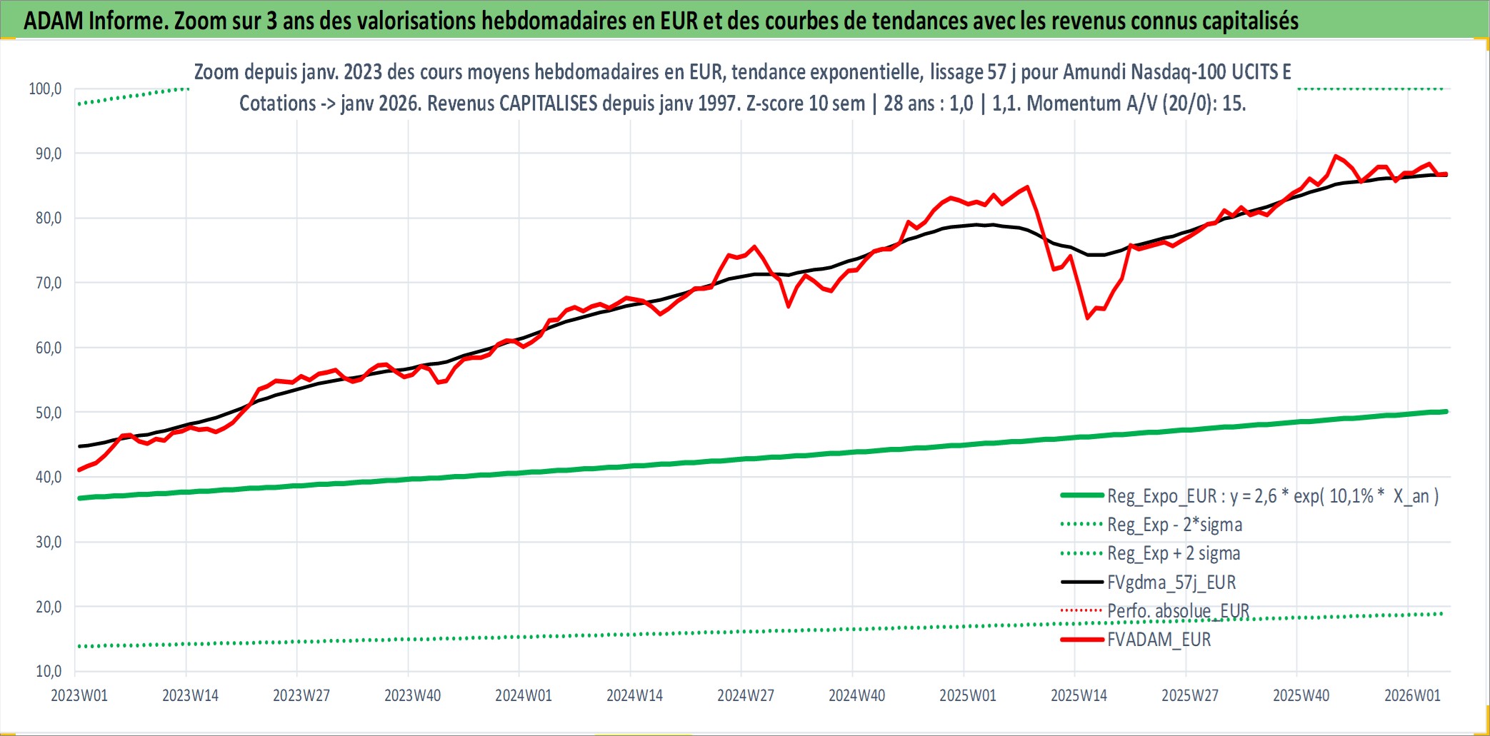Site dédié aux investisseursPage dédiée sur site financeAnalyse des valorisations hebdomadaires du fonds Amundi Nasdaq-100 UCITS ETF PEA_Acc. Cet actif est cote en EUR. Les valorisations couvrent les semaines 1997W01 a 2026W05. Les revenus de cet actif financier sont pris en compte depuis la semaine 1997W01. La note ESG de cet actif n'est pas connue.