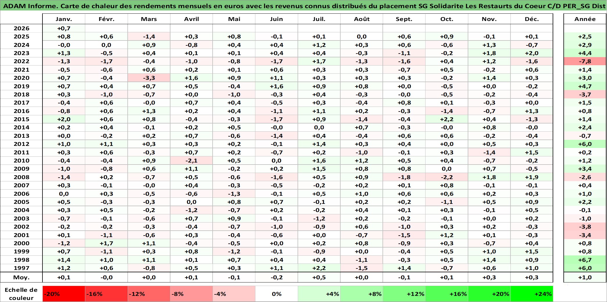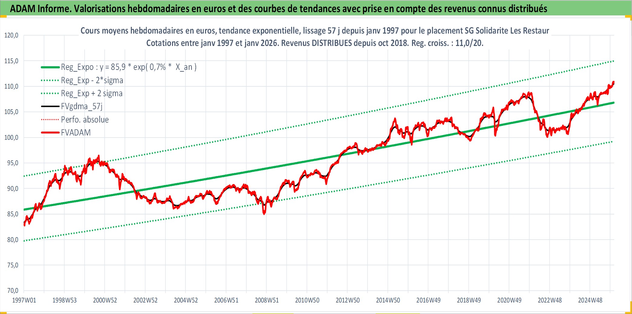 Site dédié aux investisseursPage dédiée sur site financeAnalyse des valorisations hebdomadaires du fonds SG Solidarite Les Restaurts du Coeur C/D PER_SG Dist. Cet actif est cote en EUR. Les valorisations couvrent les semaines 1997W01 a 2026W05. Les revenus de cet actif financier sont pris en compte depuis la semaine 2018W43. La note ESG de cet actif n'est pas connue.