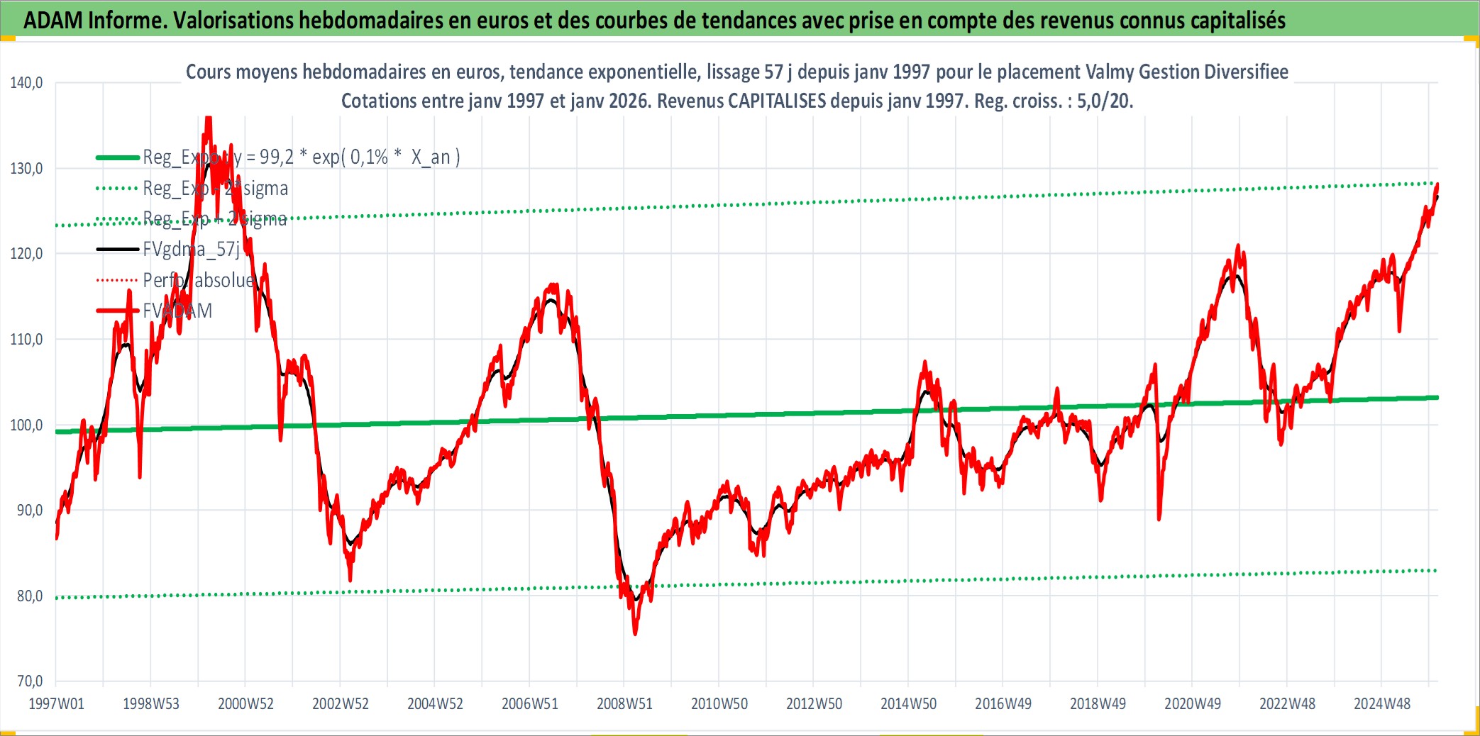 Site dédié aux investisseursPage dédiée sur site financeAnalyse des valorisations hebdomadaires du fonds Valmy Gestion Diversifiee PER_SG Acc. Cet actif est cote en EUR. Les valorisations couvrent les semaines 1997W01 a 2026W05. Les revenus de cet actif financier sont pris en compte depuis la semaine 1997W01. La note ESG de cet actif n'est pas connue.