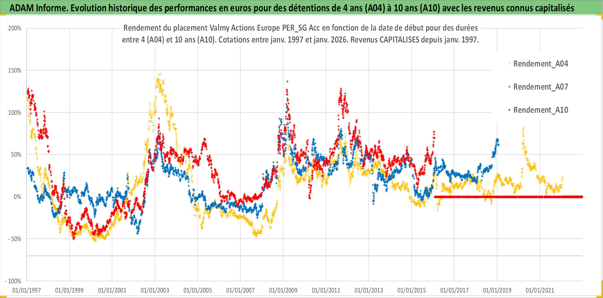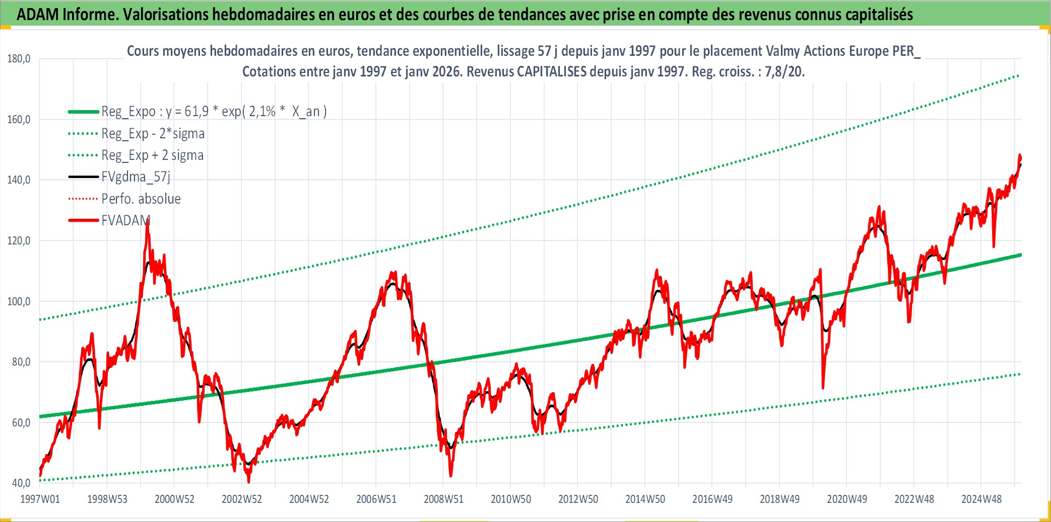 Site dédié aux investisseursPage dédiée sur site financeAnalyse des valorisations hebdomadaires du fonds Valmy Actions Europe PER_SG Acc. Cet actif est cote en EUR. Les valorisations couvrent les semaines 1997W01 a 2026W05. Les revenus de cet actif financier sont pris en compte depuis la semaine 1997W01. La note ESG de cet actif n'est pas connue.
