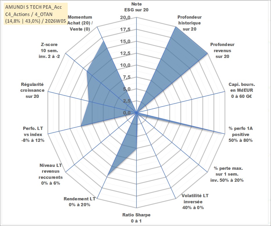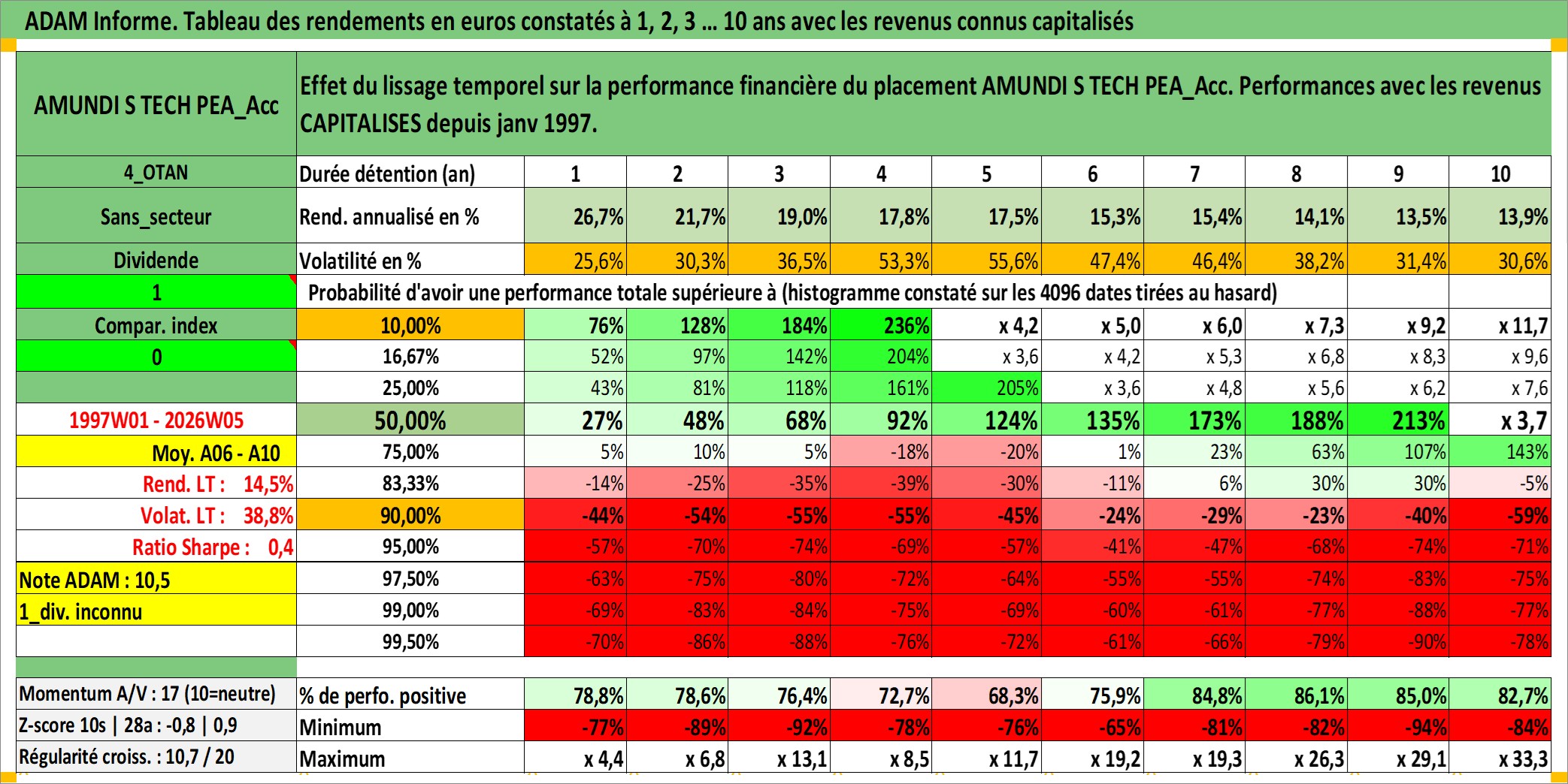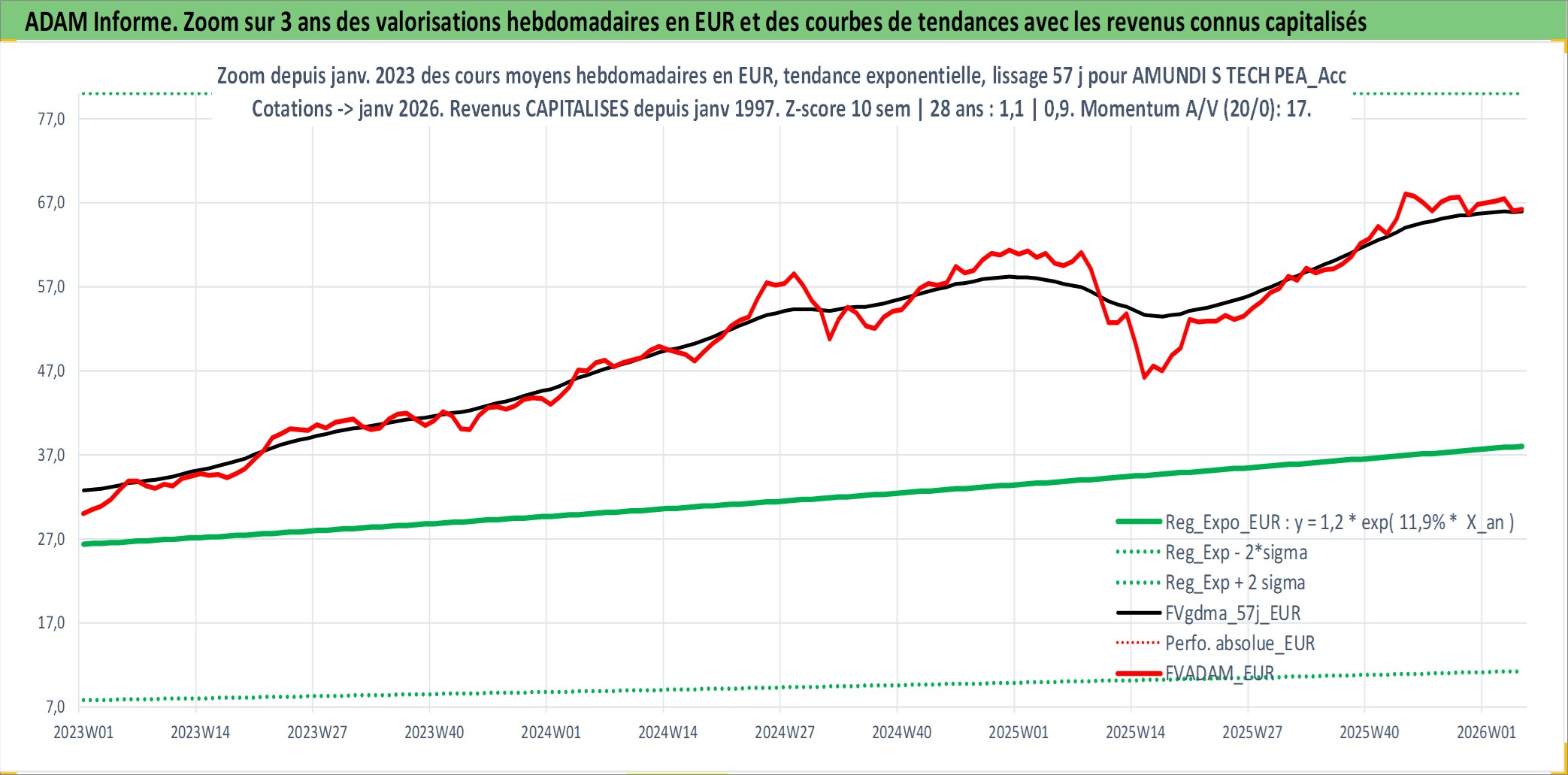 Site dédié aux investisseursPage dédiée sur site financeAnalyse des valorisations hebdomadaires du fonds AMUNDI S TECH PEA_Acc. Cet actif est cote en EUR. Les valorisations couvrent les semaines 1997W01 a 2026W05. Les revenus de cet actif financier sont pris en compte depuis la semaine 1997W01. La note ESG de cet actif n'est pas connue.