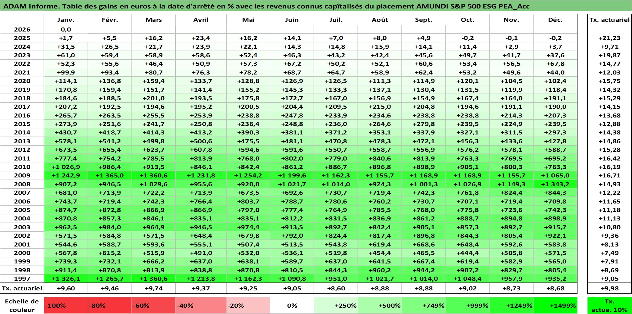Site dédié aux investisseursPage dédiée sur site financeAnalyse des valorisations hebdomadaires du fonds AMUNDI S&P 500 ESG PEA_Acc. Cet actif est cote en EUR. Les valorisations couvrent les semaines 1997W01 a 2026W05. Les revenus de cet actif financier sont pris en compte depuis la semaine 1997W01. La note ESG de cet actif n'est pas connue.