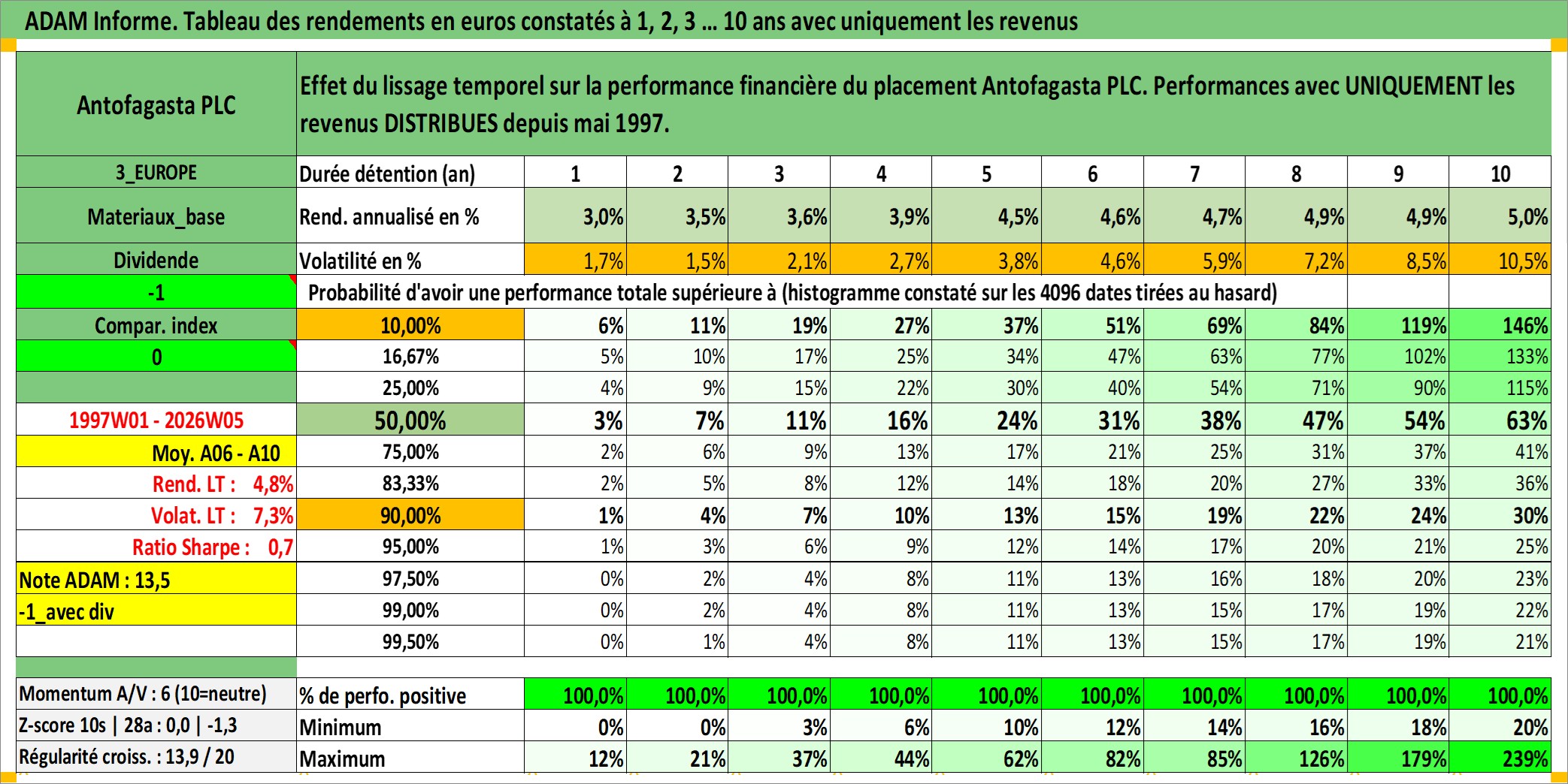 Dernière perfo 10 ans en %
