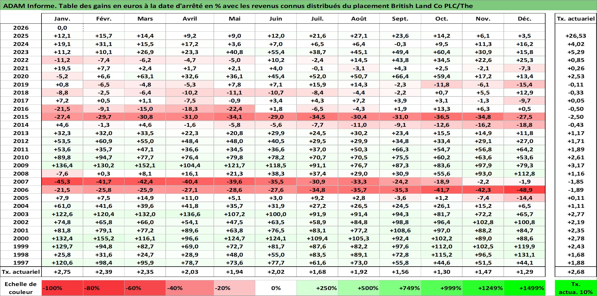 Dernière perfo 10 ans en %