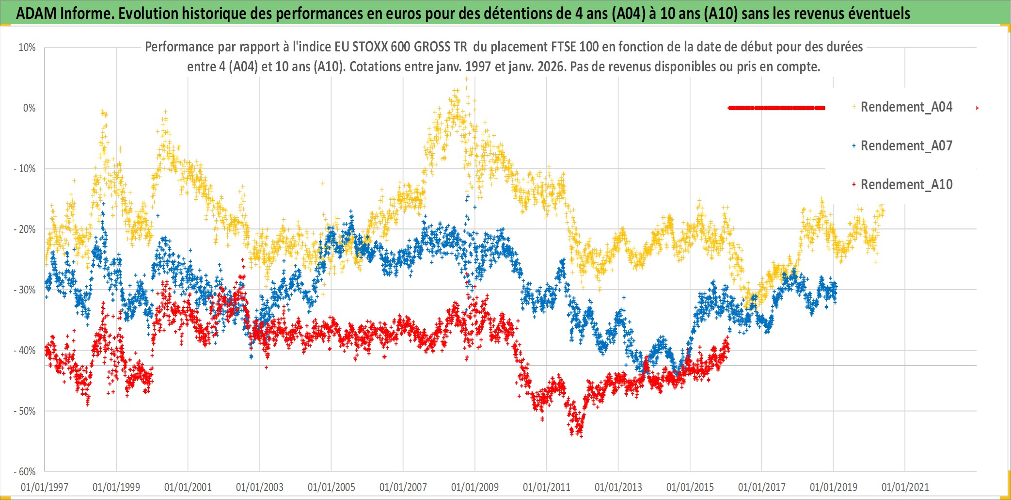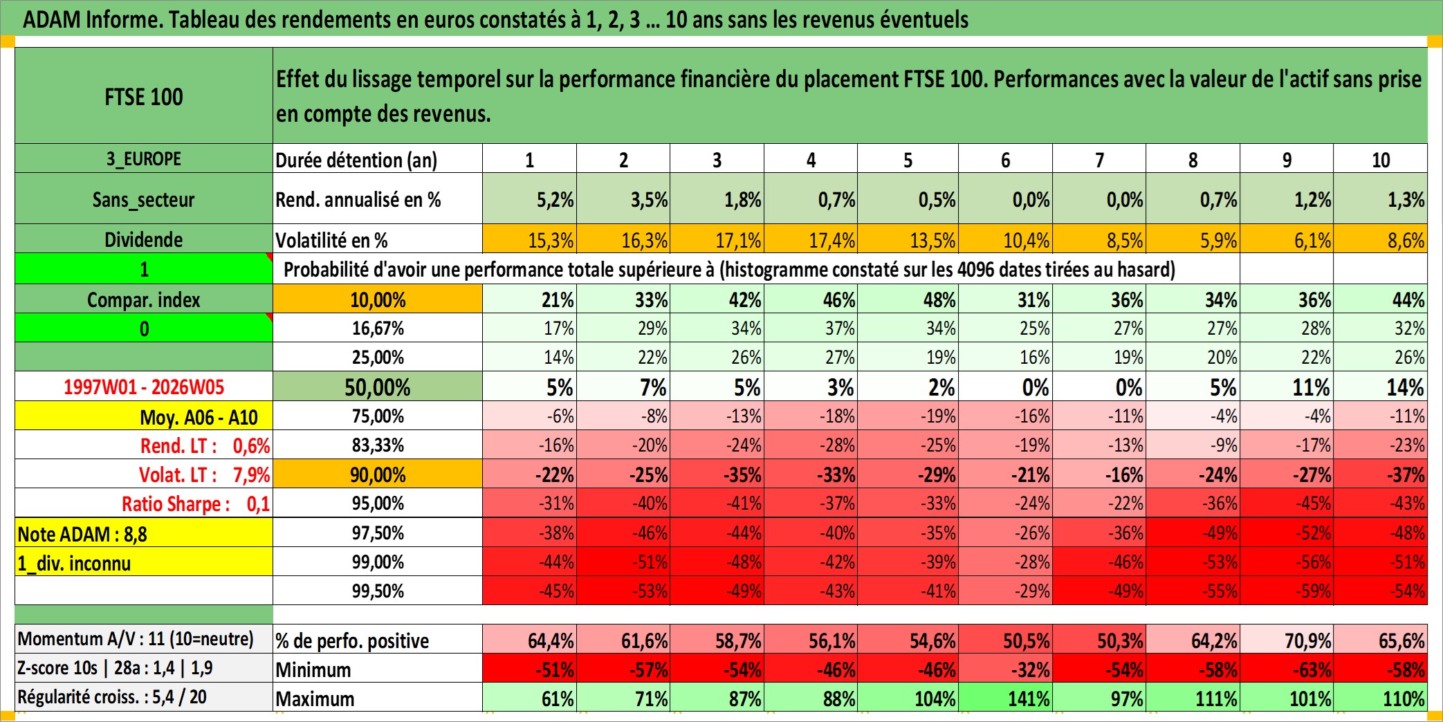 Site dédié aux investisseursPage dédiée sur site financeAnalyse des valorisations hebdomadaires de l'actif FTSE 100. Cet actif est cote en GBP. Les valorisations sont en contrevaleur EURO et couvrent les semaines 1997W01 a 2026W05. Les revenus de cet actif financier ne sont pas connus car non existants ou non disponibles sur le site Yahoo Finance. La note ESG de cet actif n'est pas connue.