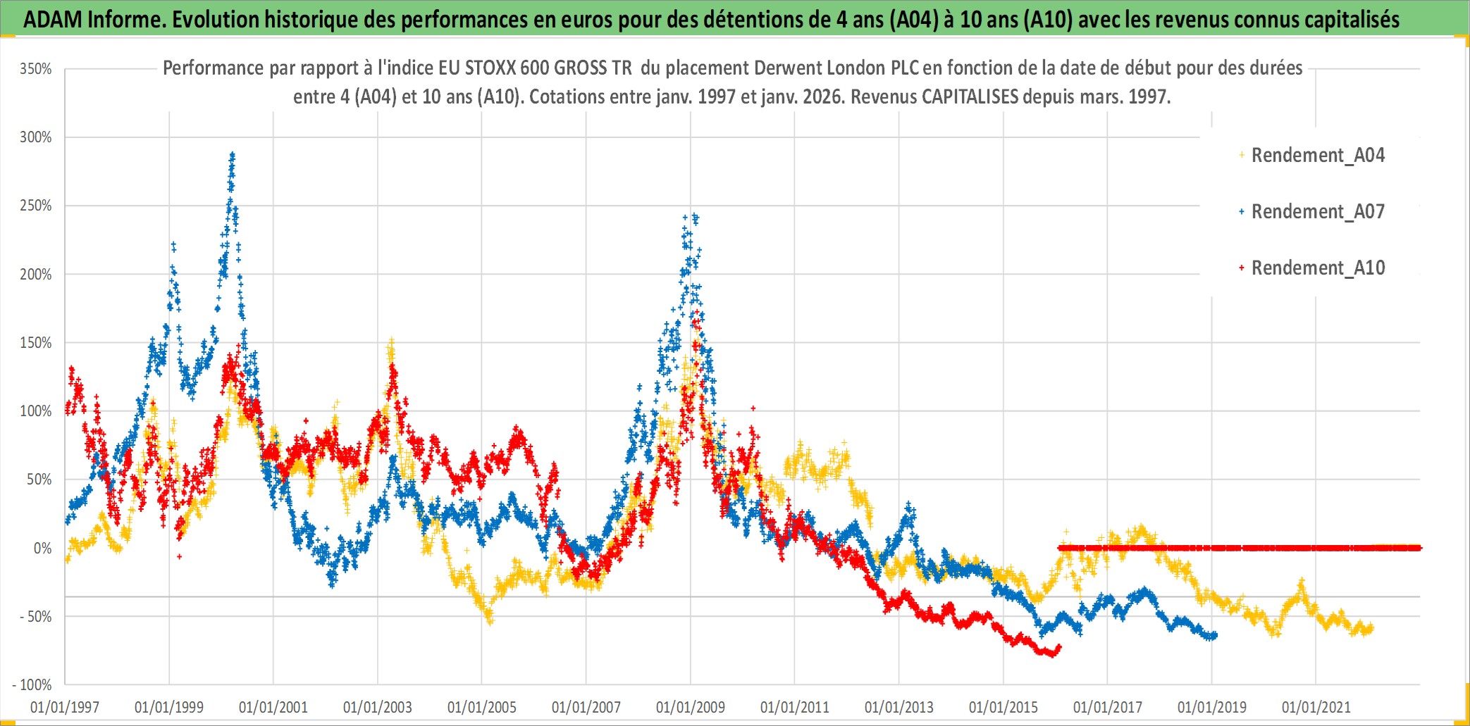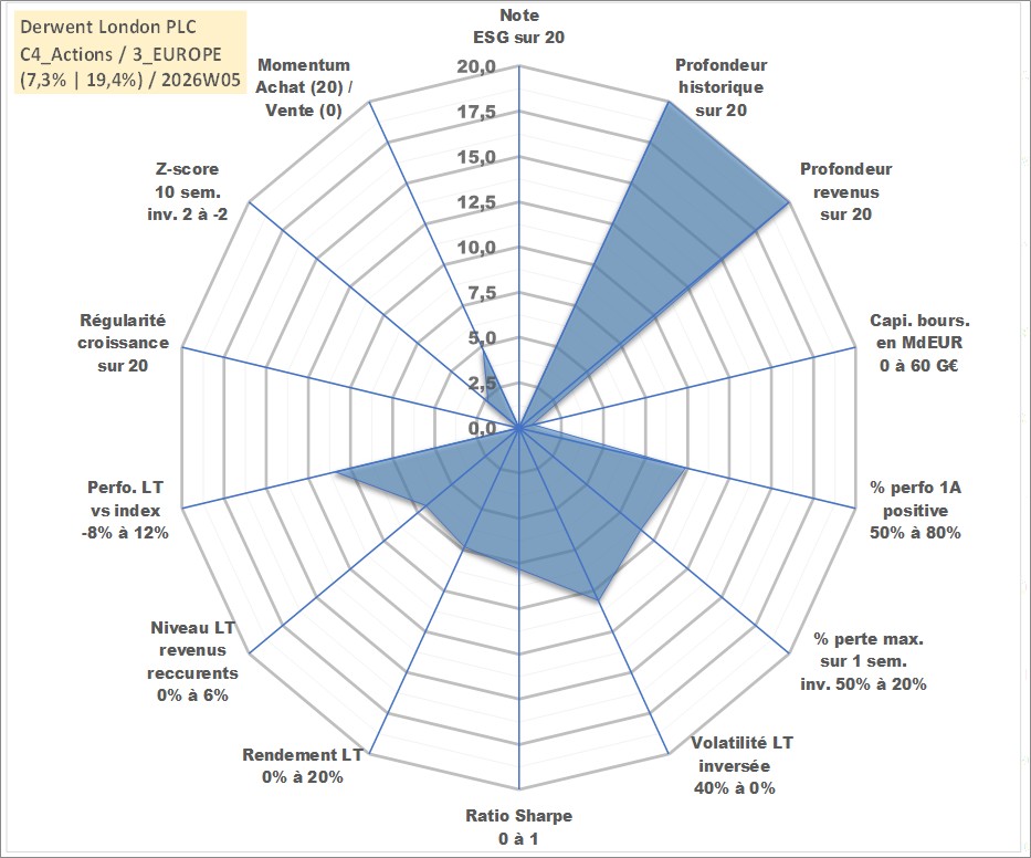 Site dédié aux investisseursPage dédiée sur site financeAnalyse des valorisations hebdomadaires de l'action Derwent London PLC. Cet actif est cote en GBX. Les valorisations sont en contrevaleur EURO et couvrent les semaines 1997W01 a 2026W05. Les revenus de cet actif financier sont pris en compte depuis la semaine 1997W13. La note ESG de cet actif n'est pas connue.