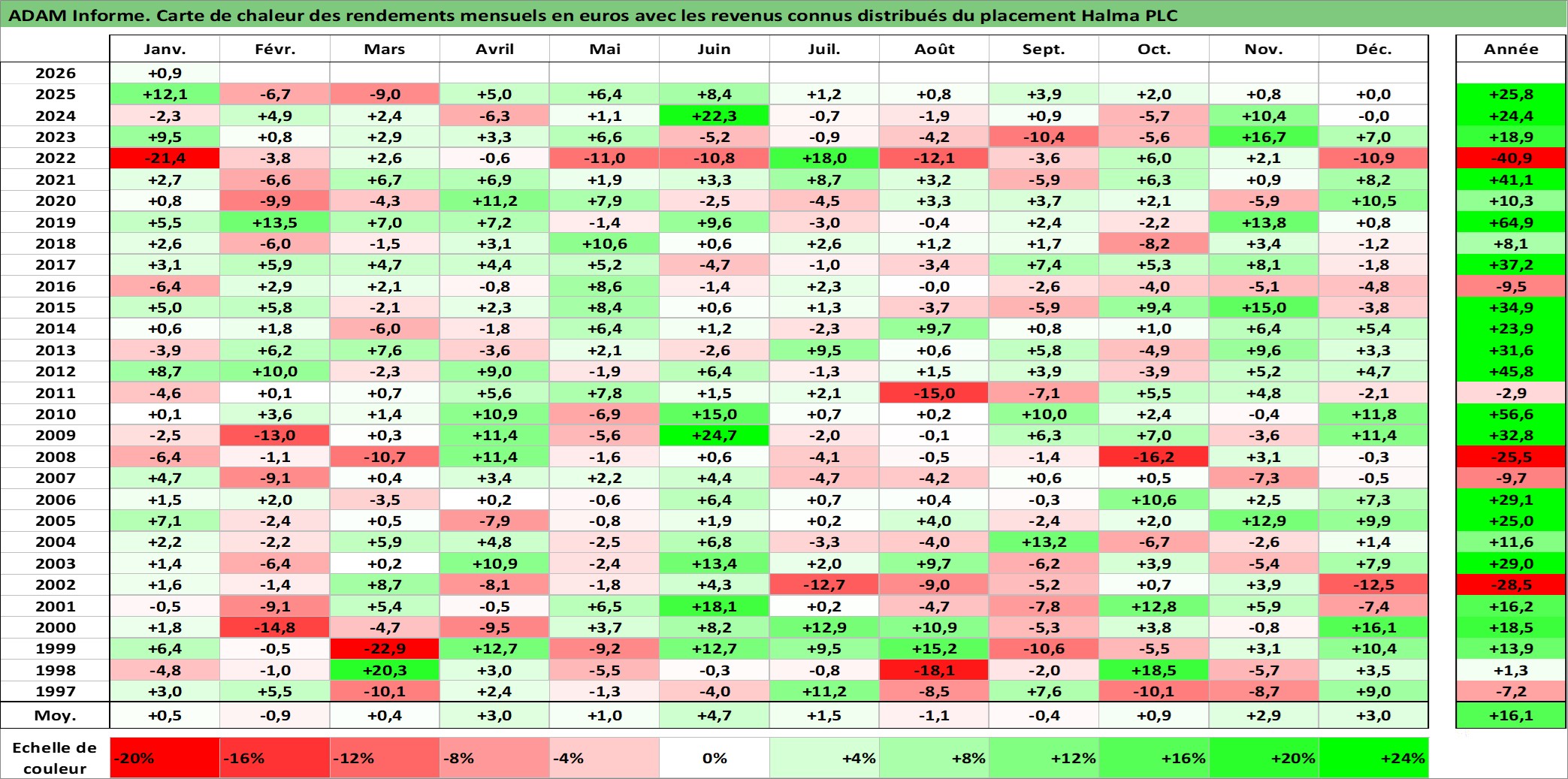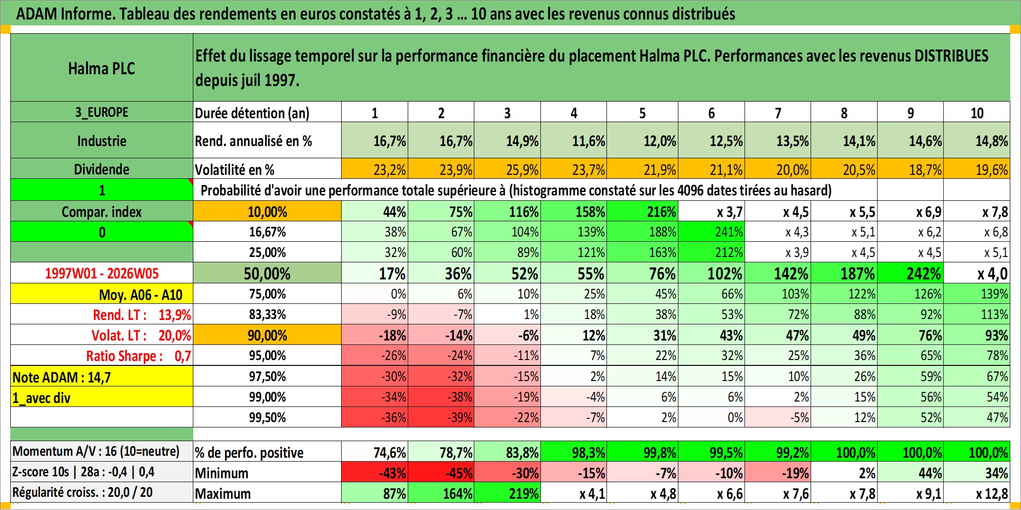 Site dédié aux investisseursPage dédiée sur site financeAnalyse des valorisations hebdomadaires de l'action Halma PLC. Cet actif est cote en GBX. Les valorisations sont en contrevaleur EURO et couvrent les semaines 1997W01 a 2026W05. Les revenus de cet actif financier sont pris en compte depuis la semaine 1997W29. La note ESG de cet actif n'est pas connue.
