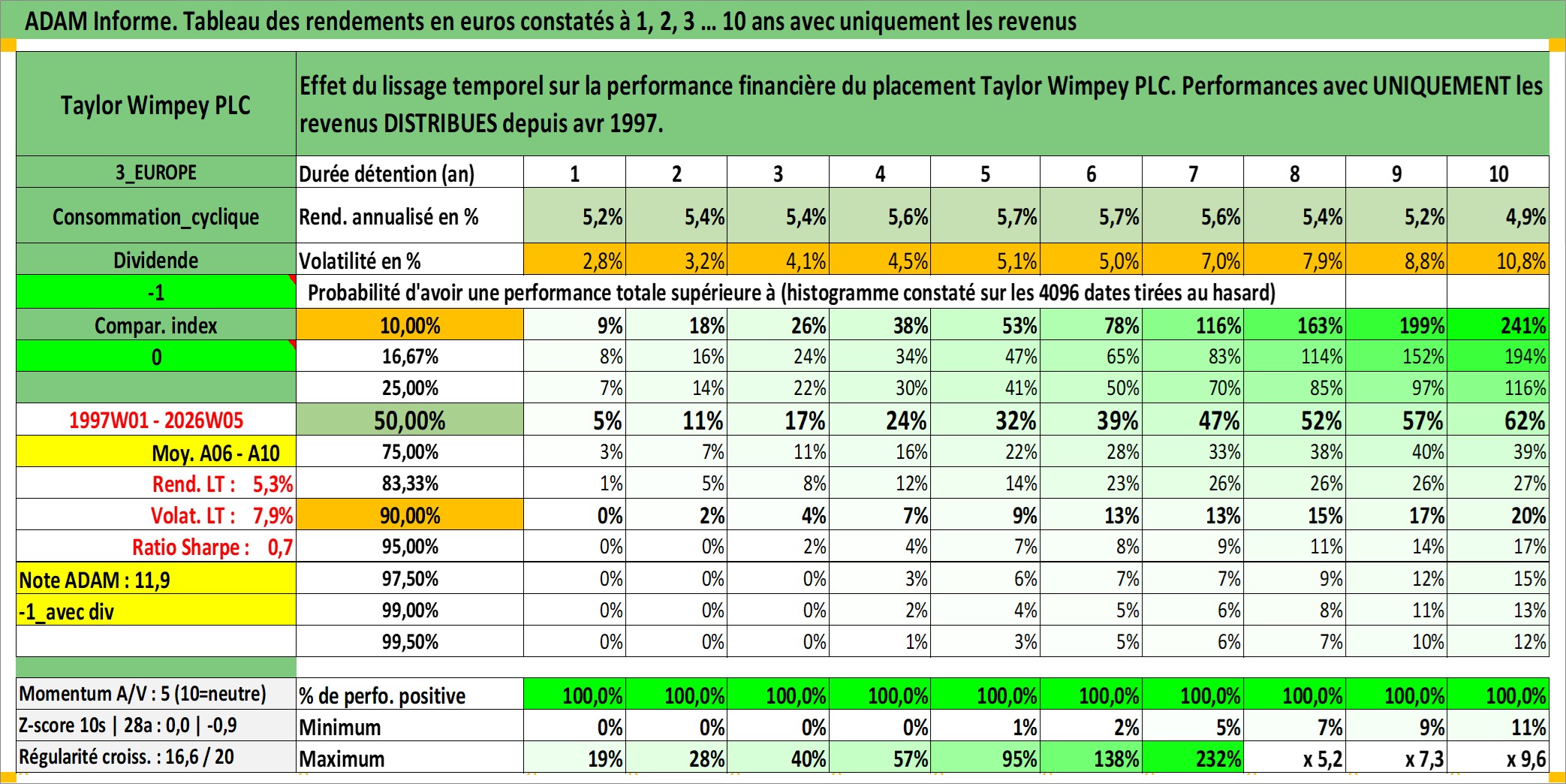 Dernière perfo 10 ans en %
