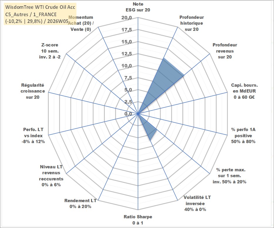 Site dédié aux investisseursPage dédiée sur site financeAnalyse des valorisations hebdomadaires du fonds WisdomTree WTI Crude Oil Acc. Cet actif est cote en EUR. Les valorisations couvrent les semaines 2008W01 a 2026W05. Les revenus de cet actif financier sont pris en compte depuis la semaine 2008W01. La note ESG de cet actif n'est pas connue.